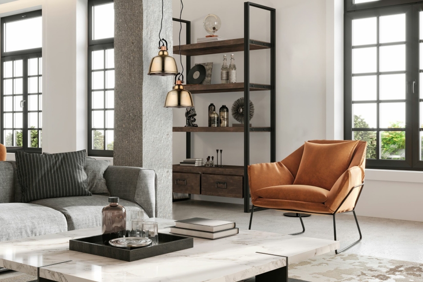 Стилът и естетиката на обстановката ще се обогатят благодарение, както на цялостната визия и дизайн на осветителното тяло, така и на вложените в изработката му, качествени материали, като: метализирано стъкло, стомана в черен цвят, масивен месинг.