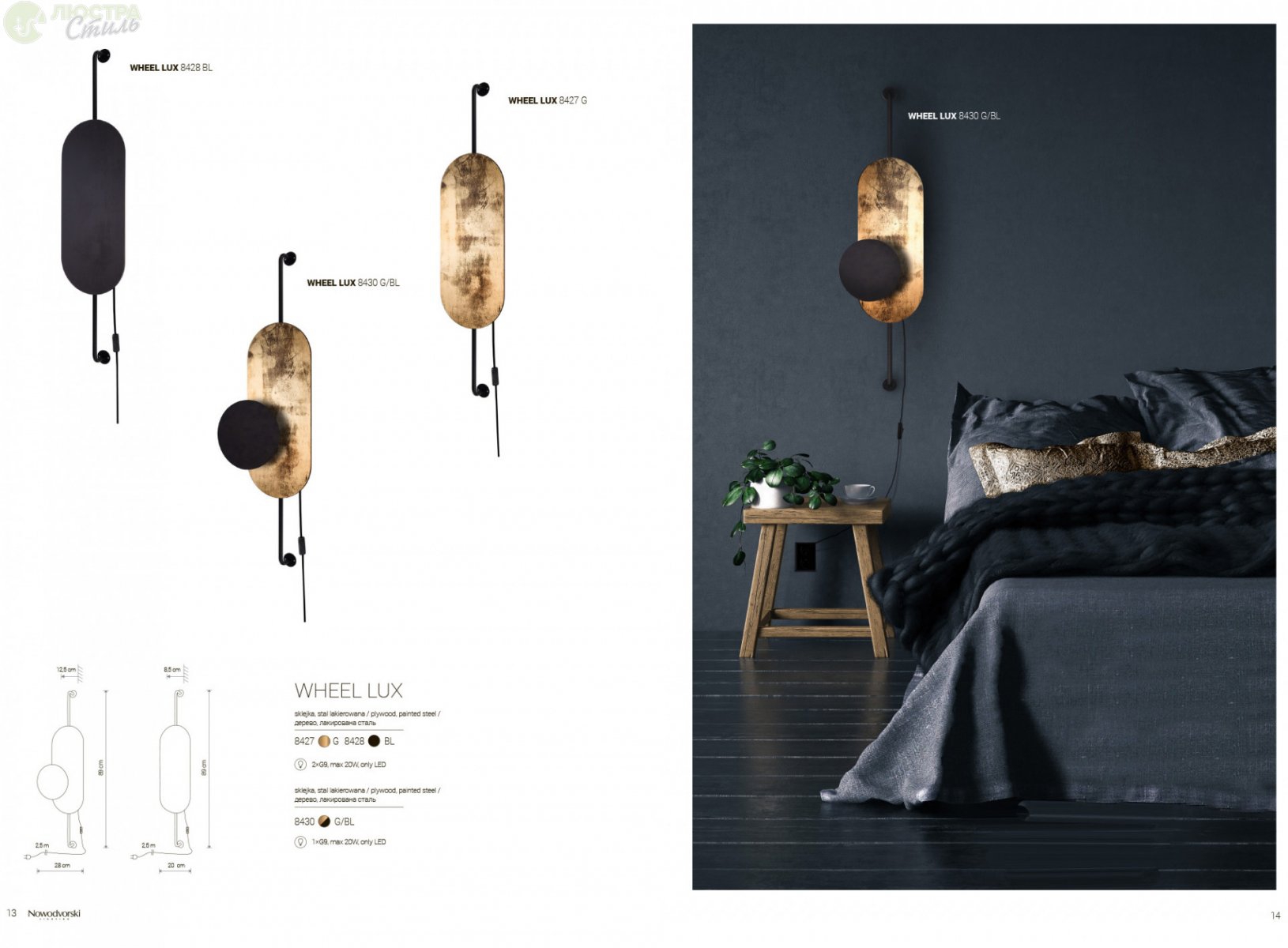 Осветителното тяло 8427 WHEEL LUX II GOLD ще осигури комфорт и естетика във всяко помещение, в което се постави. Цялостната визия и дизайн на лампата и вложените в изработката й материали, като дърво в цвят злато с патина, стомана в черен цвят, ще допринесат за един неповторим стил. Благодарение на дългогодишния опит, качествените материали и строгия контрол на качеството на изработка на производителя Nowodvorski (Полша), 8427 WHEEL LUX II GOLD е на високо европейско ниво.