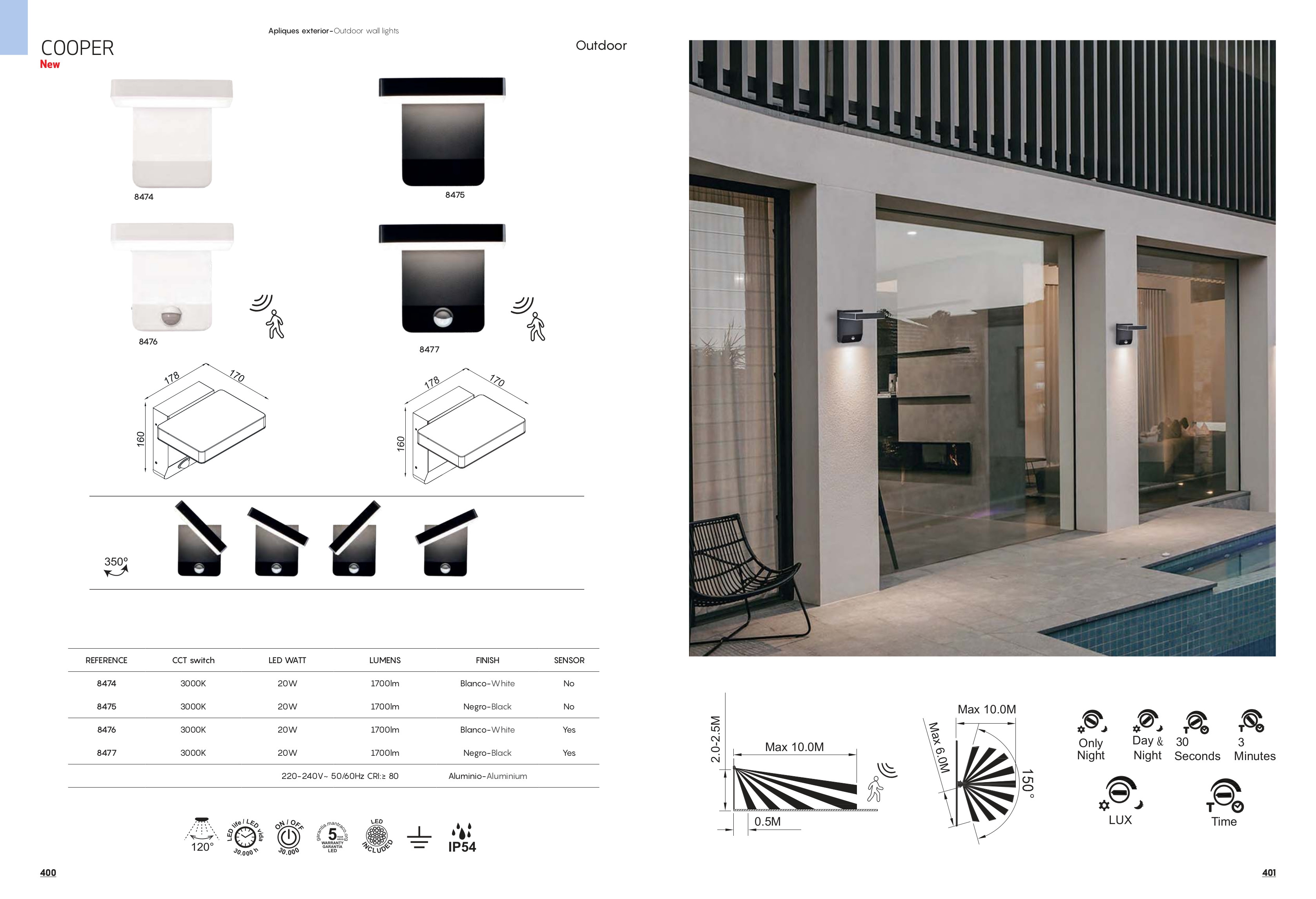 Осветителното тяло 8475 Black 20W 3000K 1700lm COOPER ще осигури комфорт и естетика във всяко помещение, в което се постави. Цялостната визия и дизайн на лампата и вложените в изработката й материали, като алуминий в черен цвят, възможност за завъртане на 350º, ще допринесат за един неповторим стил. Благодарение на дългогодишния опит, качествените материали и строгия контрол на качеството на изработка на производителя Mantra (Испания), 8475 Black 20W 3000K 1700lm COOPER е на високо европейско ниво.