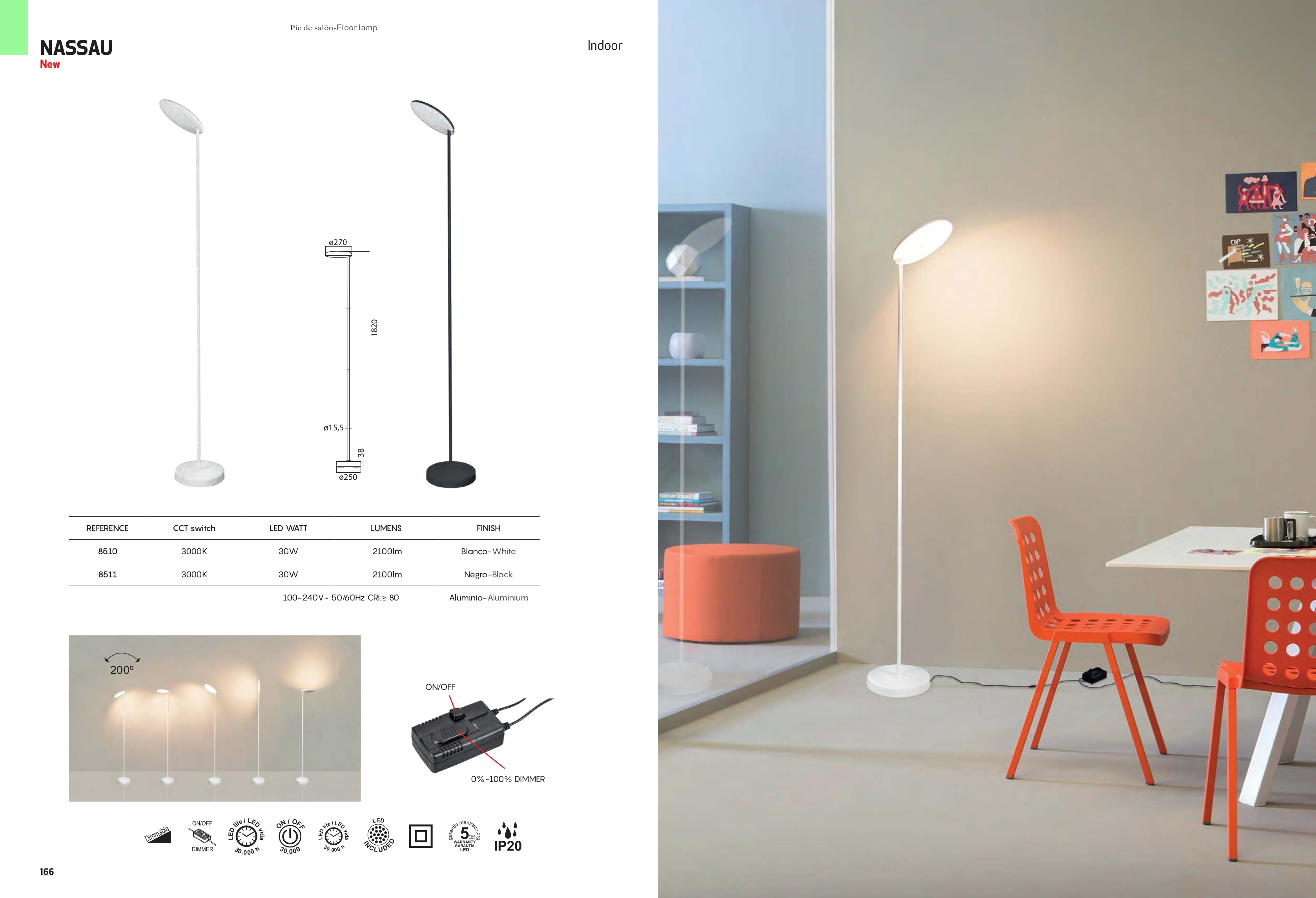 Лед лампион / правостояща лампа 8511 Black 30W 3000K 2100lm NASSAU ще осигури комфорт и естетика във всяко помещение, в което се постави. Цялостната визия и дизайн на led лампата и вложените в изработката й материали, като алуминий в черен цвят, крачен димер, подвижна глава, ще допринесат за един неповторим стил. Благодарение на дългогодишния опит в производството на лед осветление, качествените материали и строгия контрол на качеството на изработка на производителя Mantra (Испания), 8511 Black 30W 3000K 2100lm NASSAU е на високо европейско ниво.