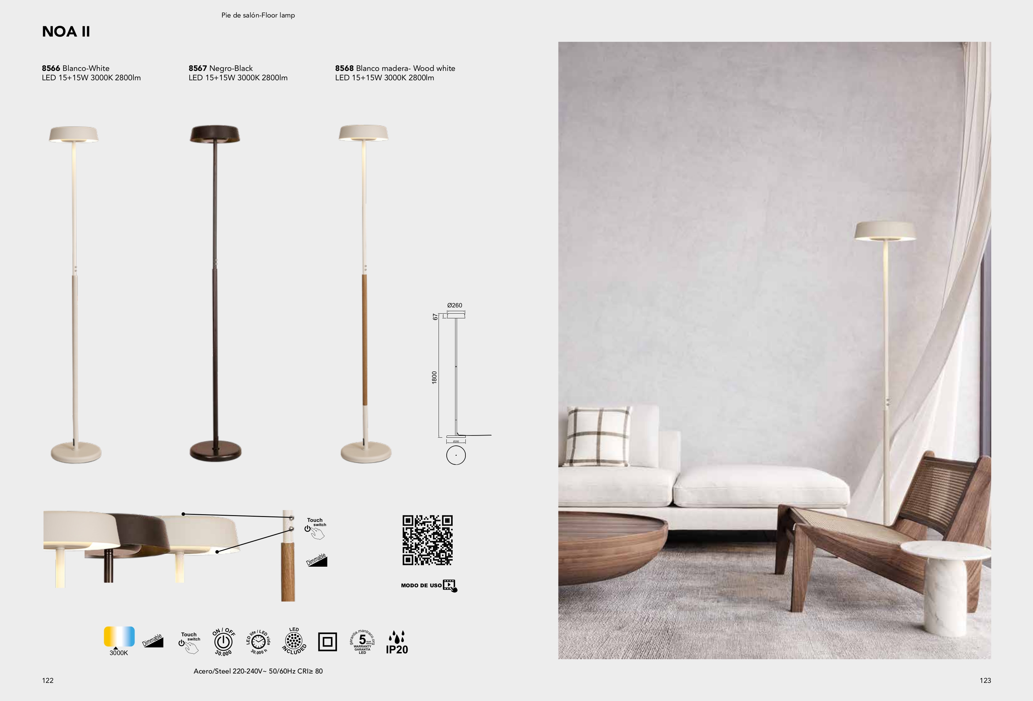 Осветителното тяло 8566 White 15+15W 3000K 2800lm NOA II ще осигури комфорт и естетика във всяко помещение, в което се постави. Цялостната визия и дизайн на лампата и вложените в изработката й материали, като стомана в бял цвят, светлинна емисия нагоре и надолу, два touch превключватели, ще допринесат за един неповторим стил. Благодарение на дългогодишния опит, качествените материали и строгия контрол на качеството на изработка на производителя Mantra (Испания), 8566 White 15+15W 3000K 2800lm NOA II е на високо европейско ниво.