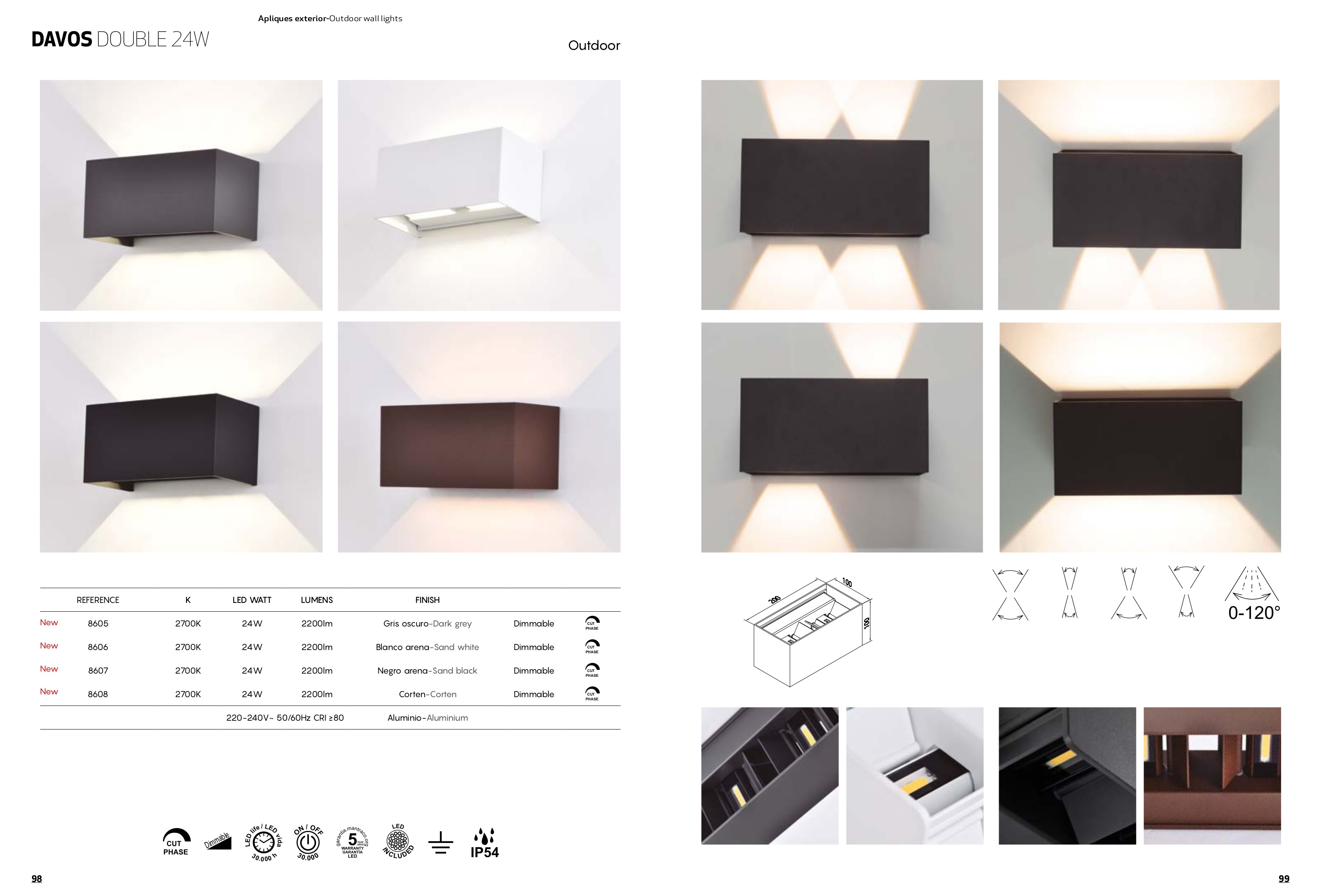 Лед аплик, външна лампа 8607 Black 24W 2700K 2200lm DAVOS ще осигури комфорт и естетика във всяко помещение, в което се постави. Цялостната визия и дизайн на led лампата и вложените в изработката й материали, като алуминий в цвят пясъчно черно, ще допринесат за един неповторим стил. Благодарение на дългогодишния опит в производството на лед осветление, качествените материали и строгия контрол на качеството на изработка на производителя Mantra (Испания), 8607 Black 24W 2700K 2200lm DAVOS е на високо европейско ниво.
