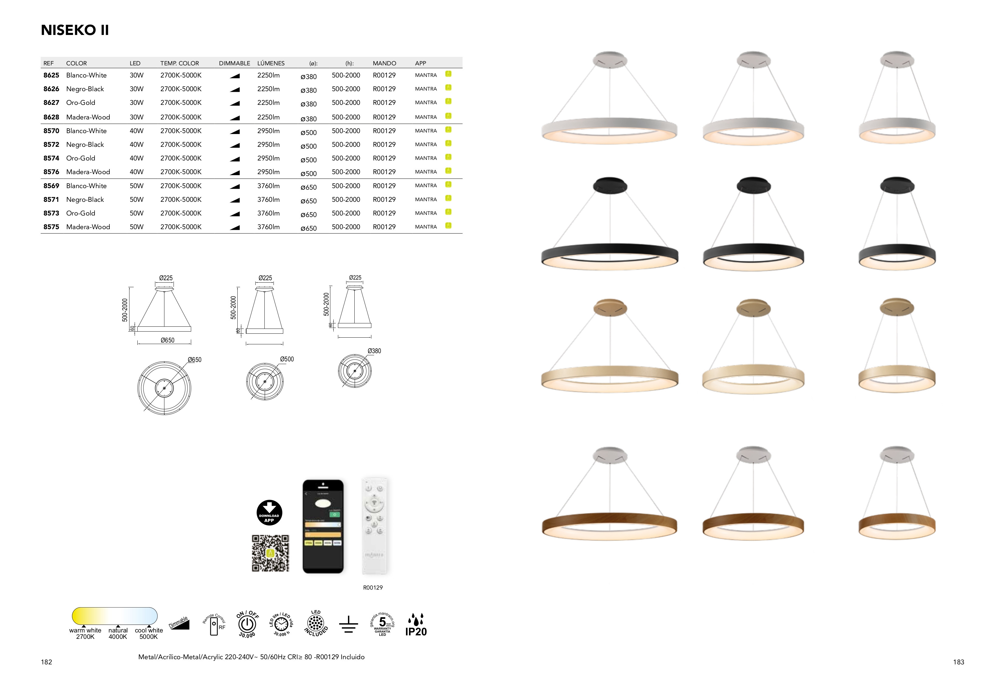 Осветителното тяло 8627 Gold 30W 2700K-5000K 2250lm NISEKO II LAMPARA представлява полилей в съвременен стил. 8627 Gold 30W 2700K-5000K 2250lm NISEKO II LAMPARA е от категорията осветителни тела и е подходящо за осветяване на различни помещения и пространства като: всекидневна / хол, спалня, кухня, трапезария, коридор, антре, офис.