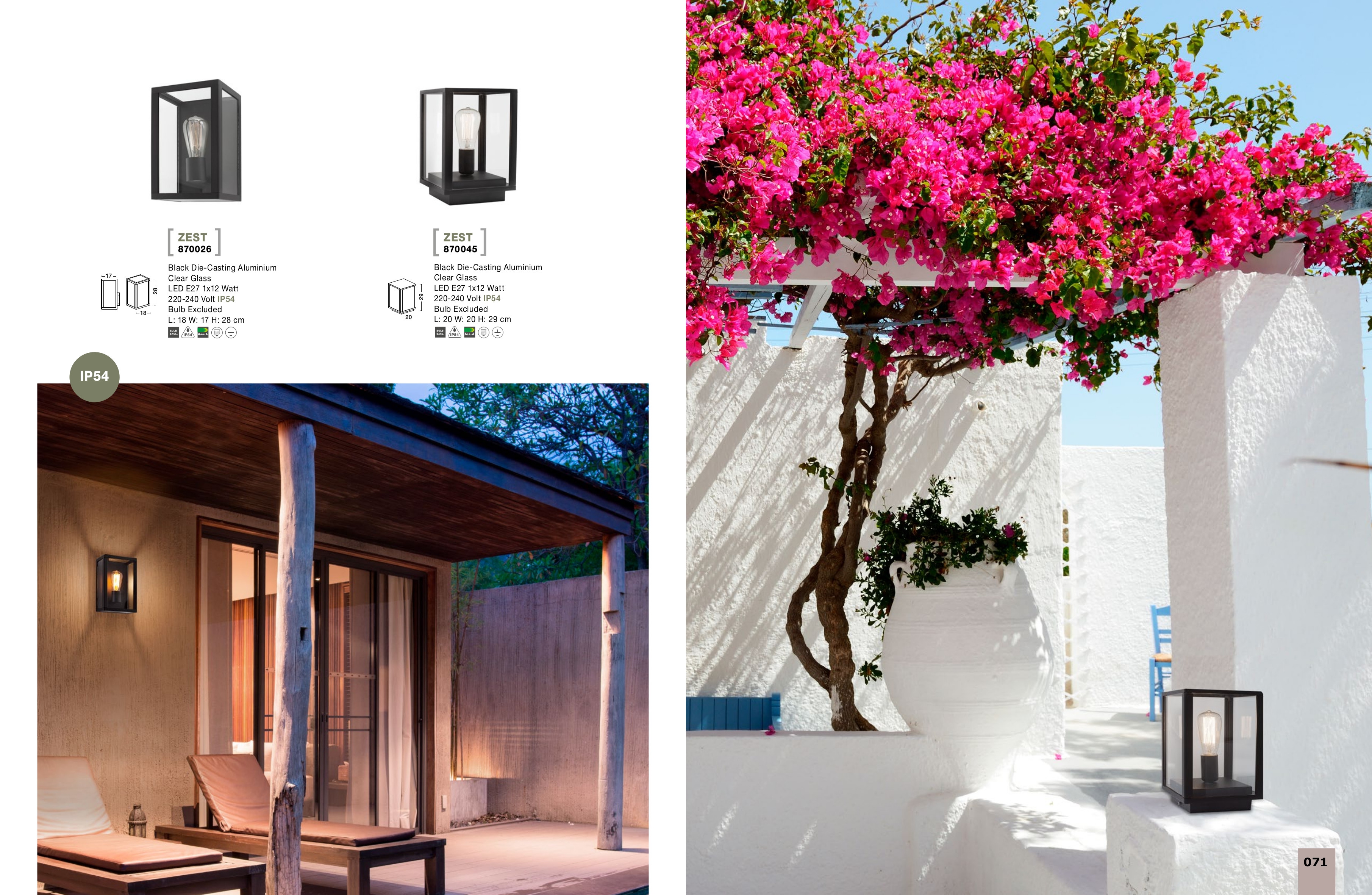 Осветителното тяло 870045 представлява външна лампа в съвременен стил. 870045 е от категорията осветителни тела и е подходящо за осветяване на различни помещения и пространства като: градинско осветление, външно осветление.