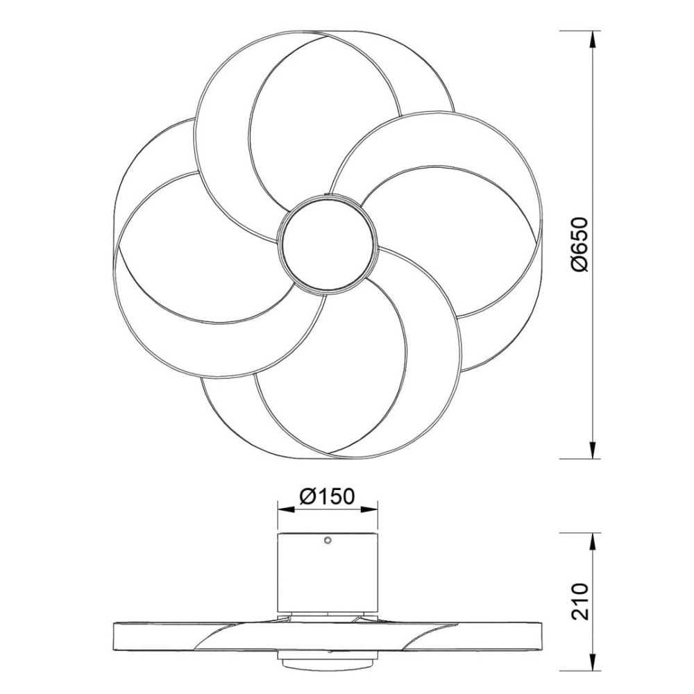 метал в бяло, дифузер от полимер в бяло, перки от полимер (ABS) в цвят светло дърво, дистанционно за управление на вентилатора, цветната температура и димиране, вентилатор с DC двигател 22 W