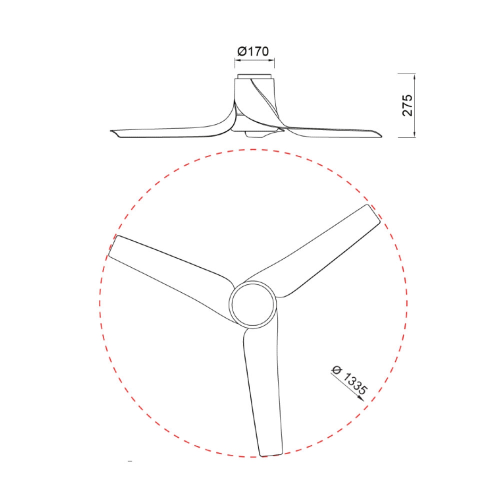 метал в бяло, дифузер от полимер в бяло, перки от полимер (ABS) в бяло, дистанционно за управление на вентилатора, цветната температура и димиране, вентилатор с DC двигател 35 W