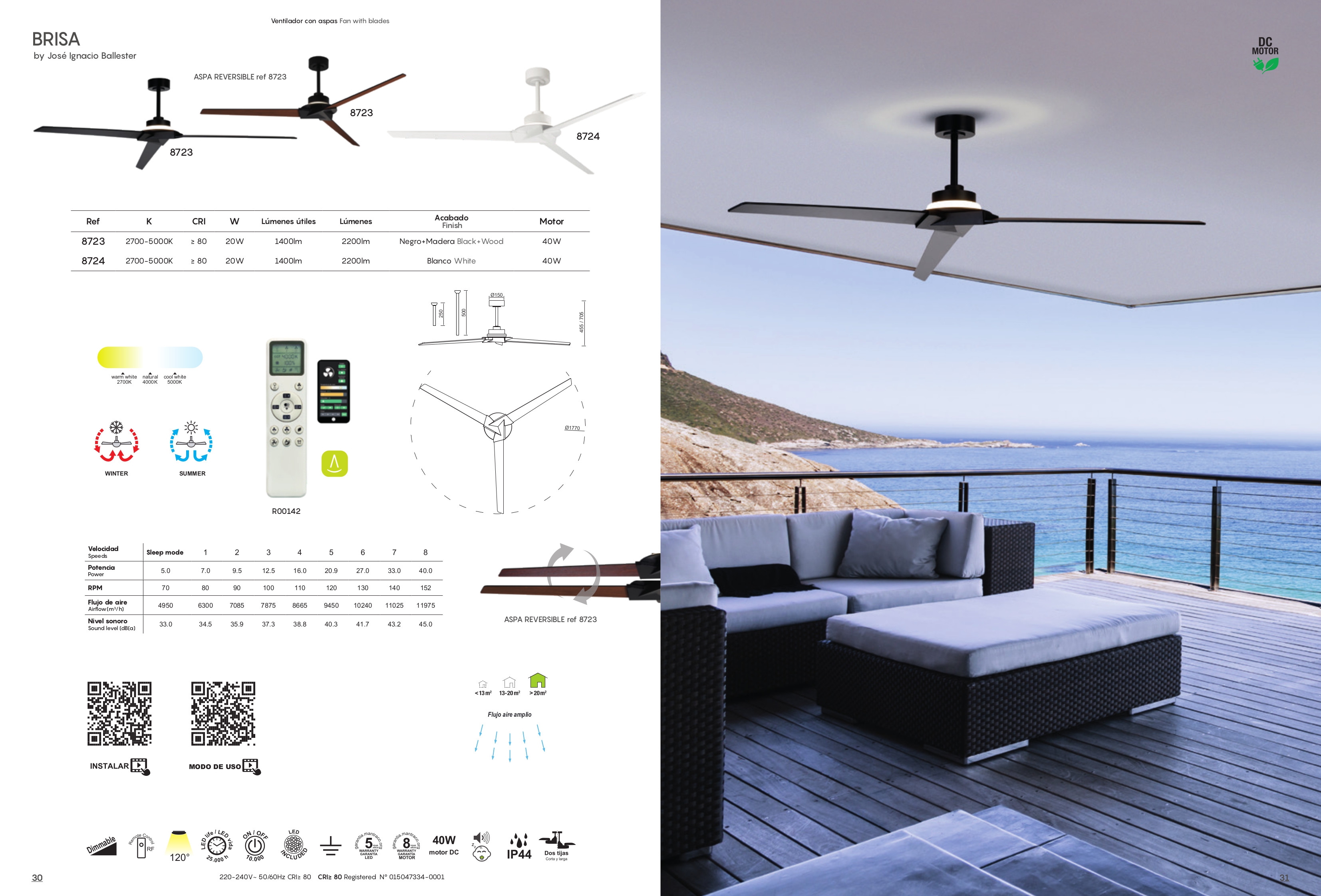 Осветителното тяло 8723 Ceil20W Fan 40W Black+Wood ще осигури комфорт и естетика във всяко помещение, в което се постави. Цялостната визия и дизайн на лампата и вложените в изработката й материали, като метал в черен цвят, дифузьор от силикон, перки в черно/тъмно дърво, дистанционно или приложение за смартфон за управление на вентилатора, цветната температура и димиране, вентилатор с DC двигател 40W, ще допринесат за един неповторим стил. Благодарение на дългогодишния опит, качествените материали и строгия контрол на качеството на изработка на производителя Mantra (Испания), 8723 Ceil20W Fan 40W Black+Wood е на високо европейско ниво.