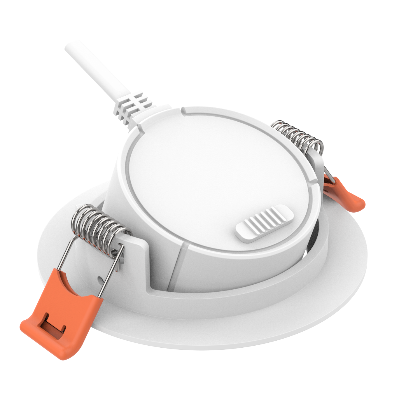 алуминий в бял цвят, полимер в бяло, възможност за промяна на цветната температура 3000K-4000K-5000K и за наклон от 18º на луничката