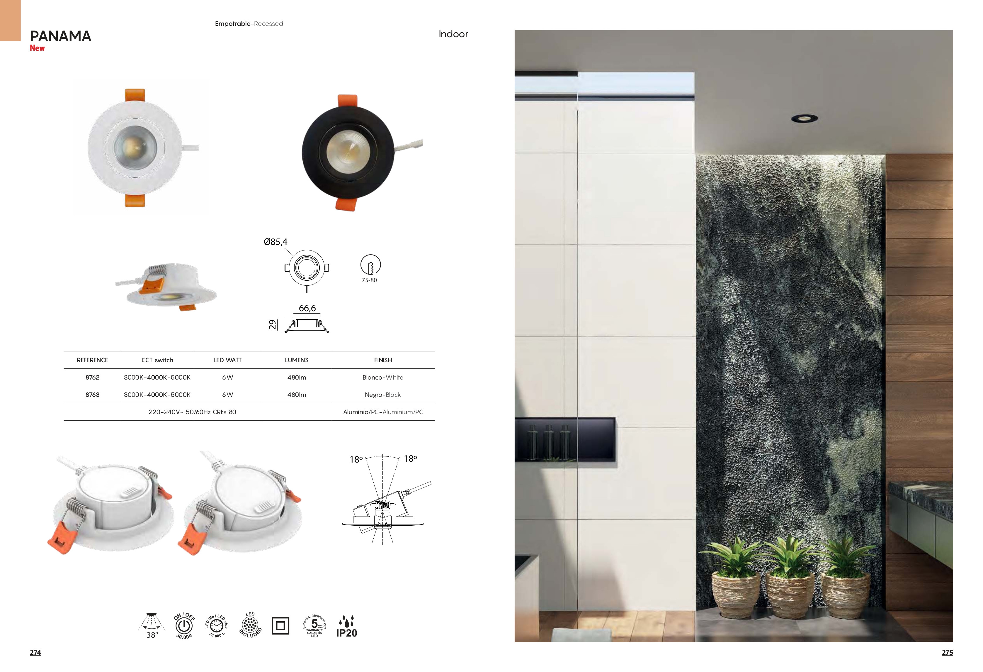 Осветителното тяло 8762 White 6W 3000K/4000K/6500K 480lm PANAMA ще осигури комфорт и естетика във всяко помещение, в което се постави. Цялостната визия и дизайн на лампата и вложените в изработката й материали, като алуминий в бял цвят, полимер в бяло, възможност за промяна на цветната температура 3000K-4000K-5000K и за наклон от 18º на луничката, ще допринесат за един неповторим стил. Благодарение на дългогодишния опит, качествените материали и строгия контрол на качеството на изработка на производителя Mantra (Испания), 8762 White 6W 3000K/4000K/6500K 480lm PANAMA е на високо европейско ниво.