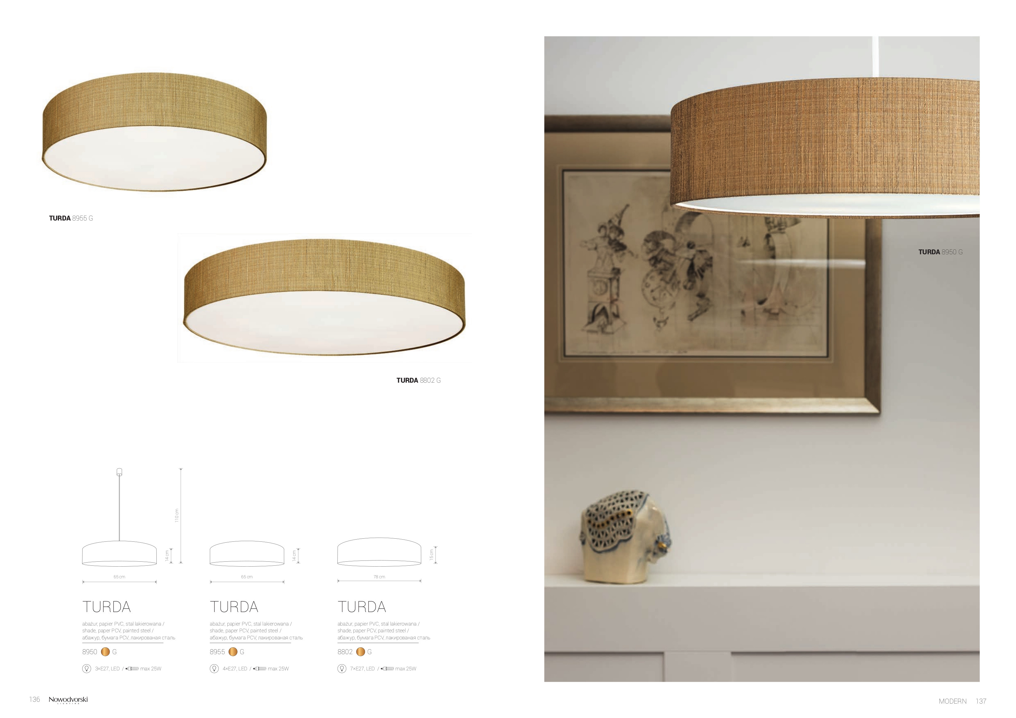 Ел. мощност 7 х 25 W Размери Ф78см x 15см Производител Nowodvorski, Полша