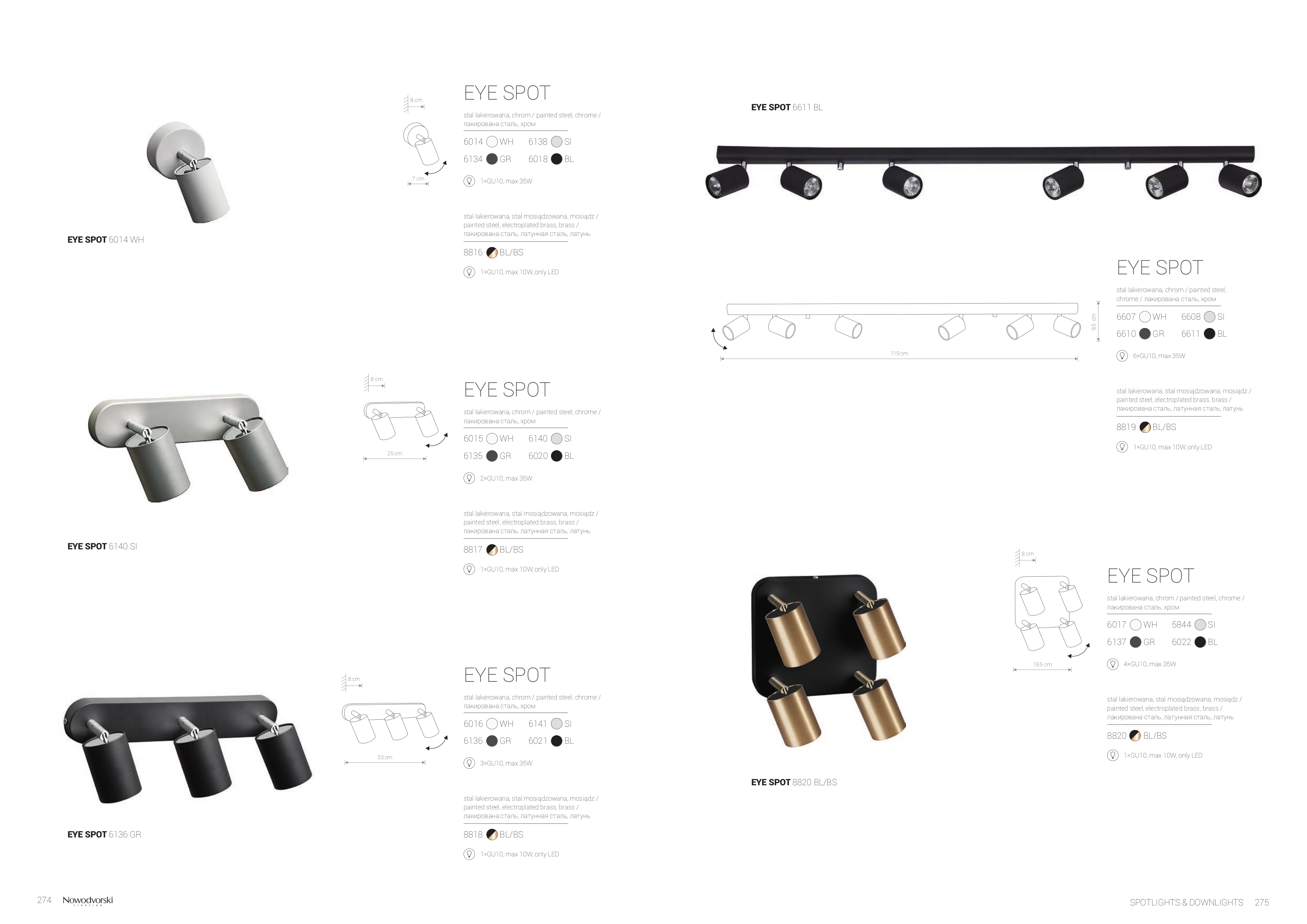 Осветителното тяло 8817 EYE SPOT BRASS II ще осигури комфорт и естетика във всяко помещение, в което се постави. Цялостната визия и дизайн на лампата и вложените в изработката й материали, като основа от метал в черно, тяло от метал с цвят месинг, ще допринесат за един неповторим стил. Благодарение на дългогодишния опит, качествените материали и строгия контрол на качеството на изработка на производителя Nowodvorski (Полша), 8817 EYE SPOT BRASS II е на високо европейско ниво.