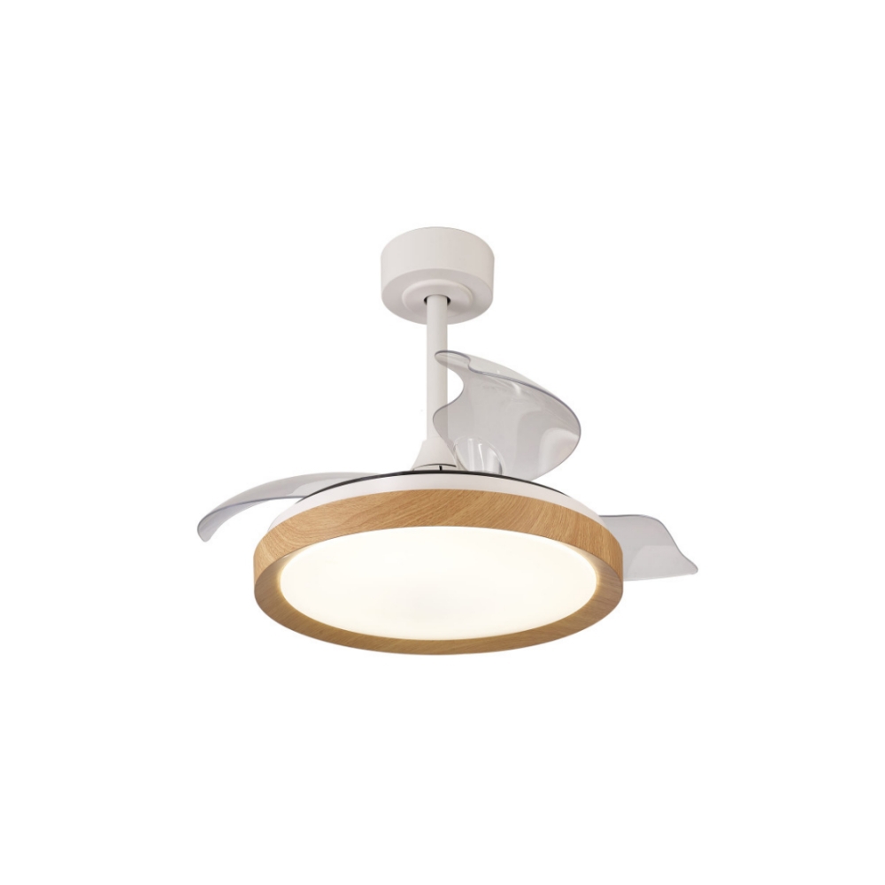 Осветителното тяло 8827 LED Ceil50W Fan 30W Wood ще осигури комфорт и естетика във всяко помещение, в което се постави. Цялостната визия и дизайн на лампата и вложените в изработката й материали, като метал и полимер (ABS) в бял цвят, декоративен пръстен от полимер в цвят дърво, дифузер от полимер (PMMA), прибиращи се парки от прозрачен поликарбонат, управление на вентилатора и светлината с дистанционно, DC двигател 28 W, ще допринесат за един неповторим стил. Благодарение на дългогодишния опит, качествените материали и строгия контрол на качеството на изработка на производителя Mantra (Испания), 8827 LED Ceil50W Fan 30W Wood е на високо европейско ниво.
