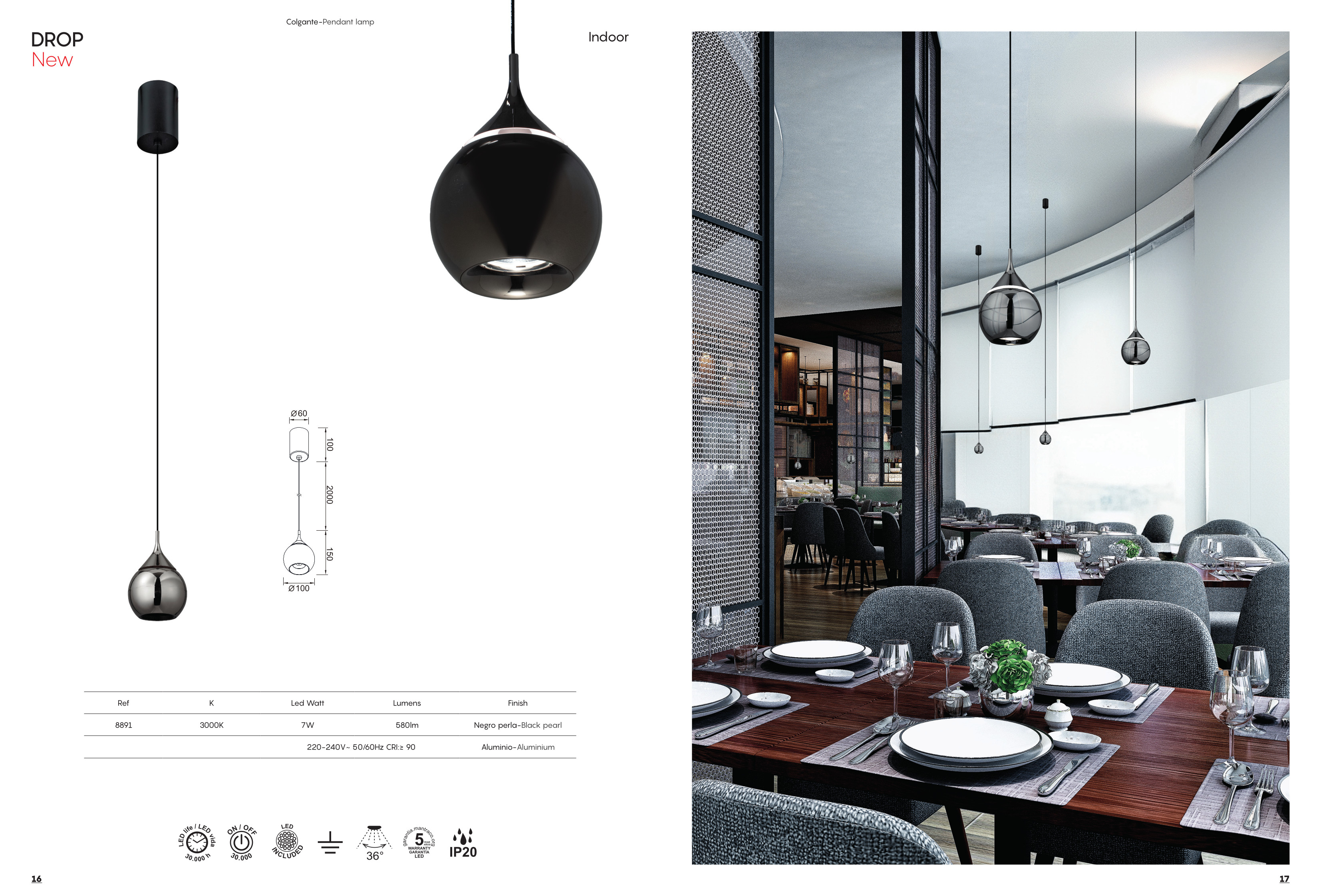 Осветителното тяло 8891 Pend 7W 3000K Black pearl ще осигури комфорт и естетика във всяко помещение, в което се постави. Цялостната визия и дизайн на лампата и вложените в изработката й материали, като алуминий в цвят черна перла, ще допринесат за един неповторим стил. Благодарение на дългогодишния опит, качествените материали и строгия контрол на качеството на изработка на производителя Mantra (Испания), 8891 Pend 7W 3000K Black pearl е на високо европейско ниво.