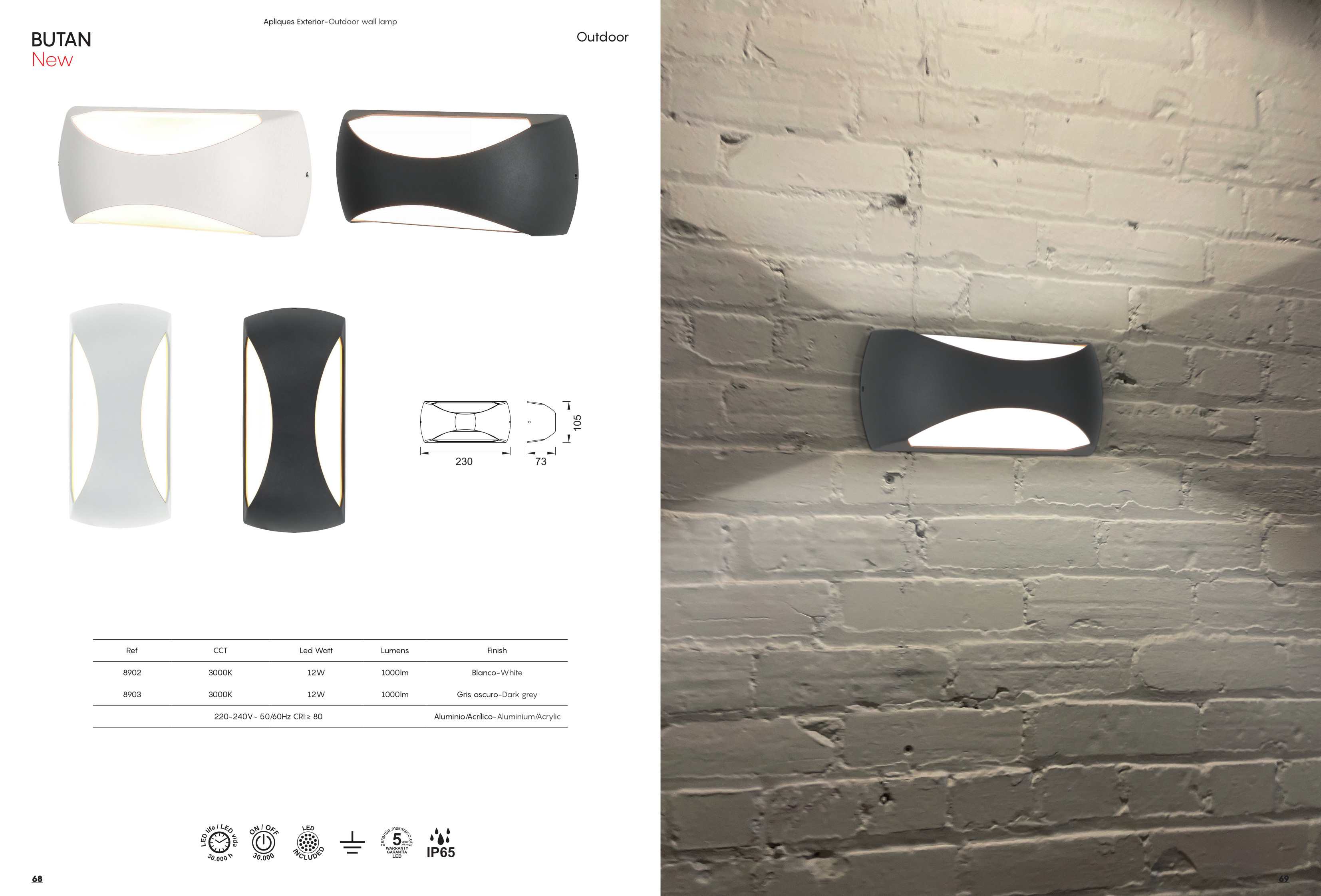 Осветителното тяло 8902 Wall 12W 3000K White представлява аплик, външна лампа в съвременен стил. 8902 Wall 12W 3000K White е от категорията осветителни тела и е подходящо за осветяване на различни помещения и пространства като: външно осветление, фасадно осветление.