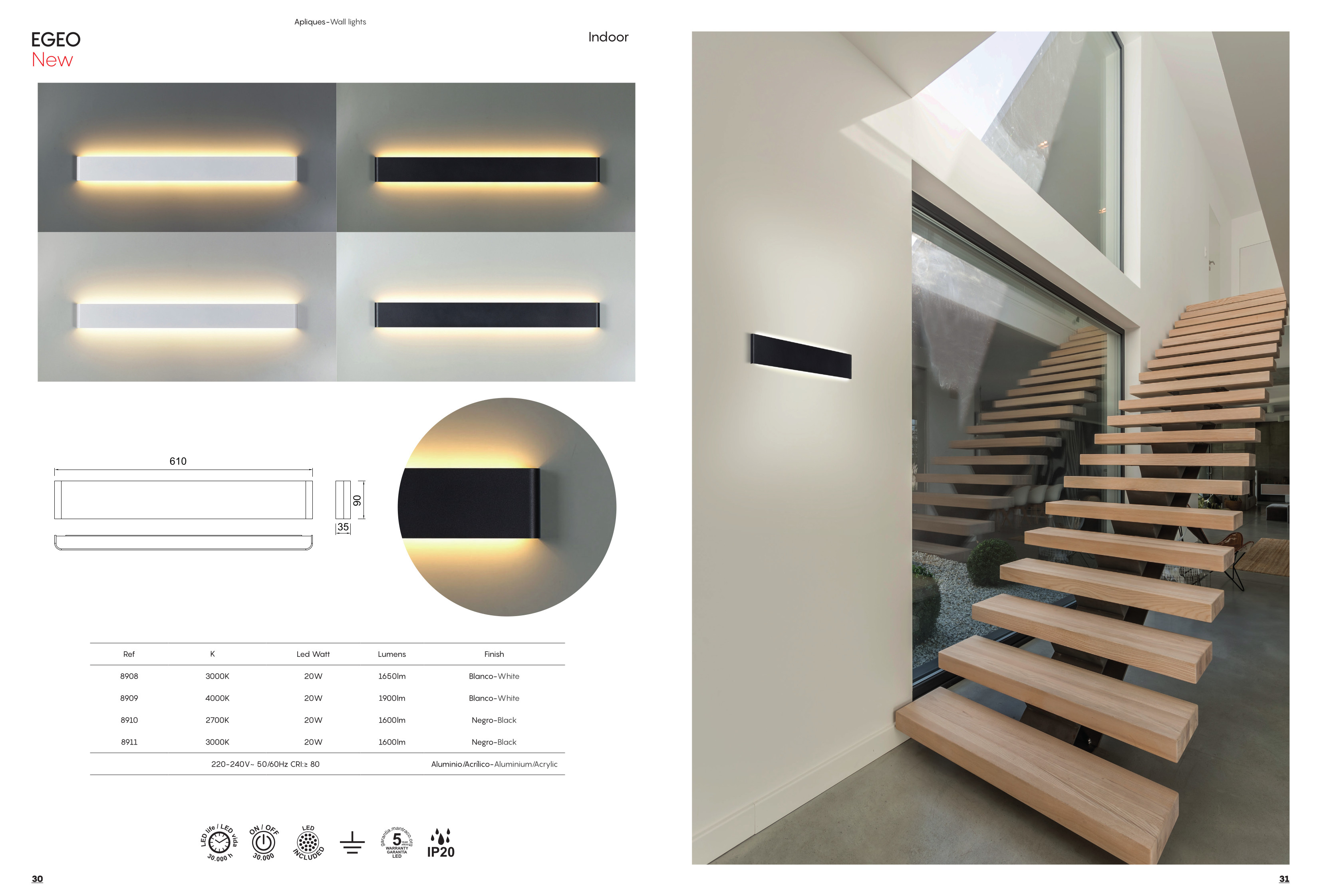 Осветителното тяло 8908 Wall 20W 3000K White представлява лед аплик в съвременен стил. 8908 Wall 20W 3000K White е от категорията и е подходящо за осветяване на различни помещения и пространства като: всекидневна / хол, спалня, кухня, трапезария, коридор, антре, стълбище, офис.