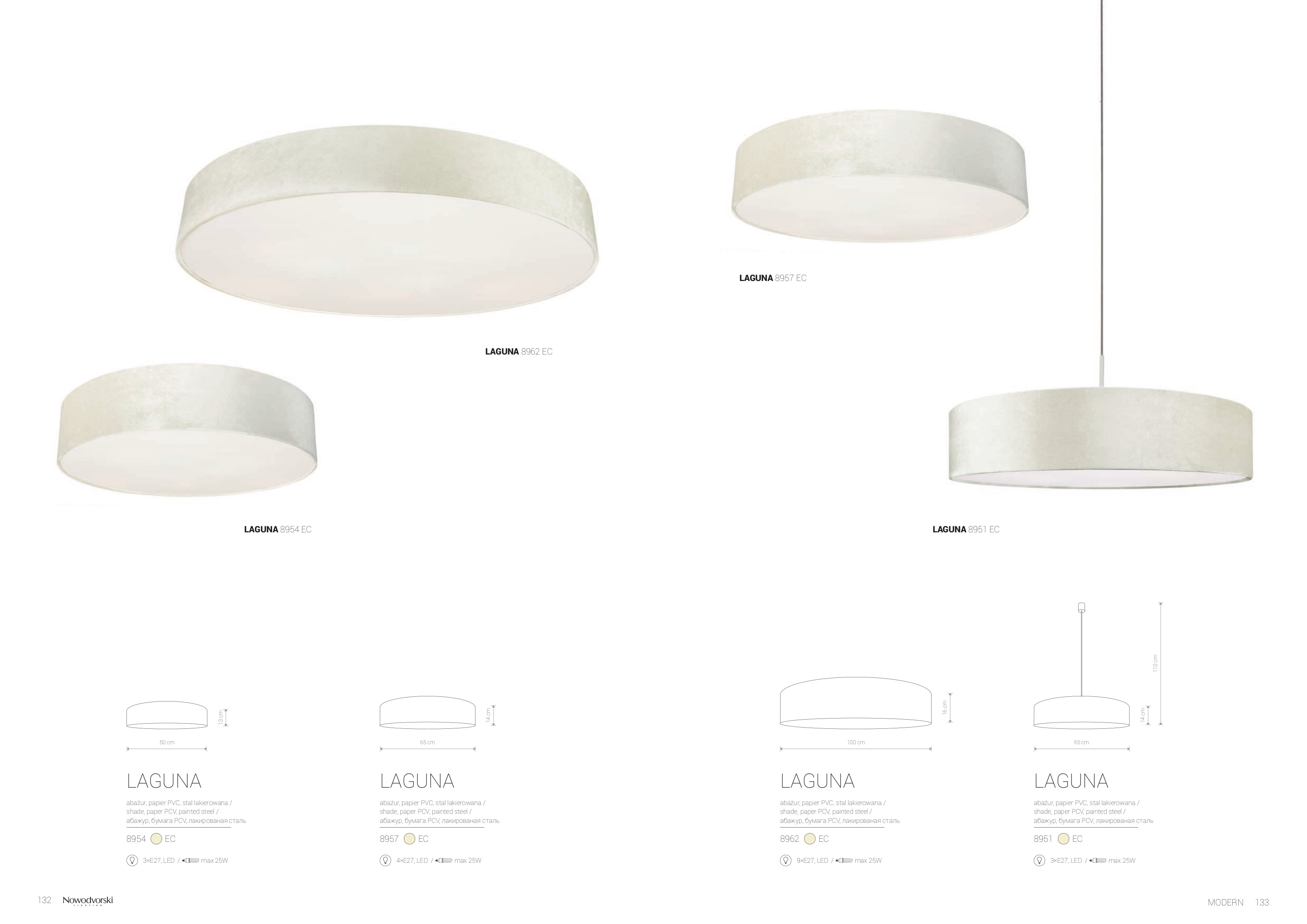 Осветителното тяло 8954 LAGUNA CREAM III ще осигури комфорт и естетика във всяко помещение, в което се постави. Цялостната визия и дизайн на лампата и вложените в изработката й материали, като стоманена основа, тяло от полимер в цвят екрю, текстилен дифузер в бяло, ще допринесат за един неповторим стил. Благодарение на дългогодишния опит, качествените материали и строгия контрол на качеството на изработка на производителя Nowodvorski (Полша), 8954 LAGUNA CREAM III е на високо европейско ниво.