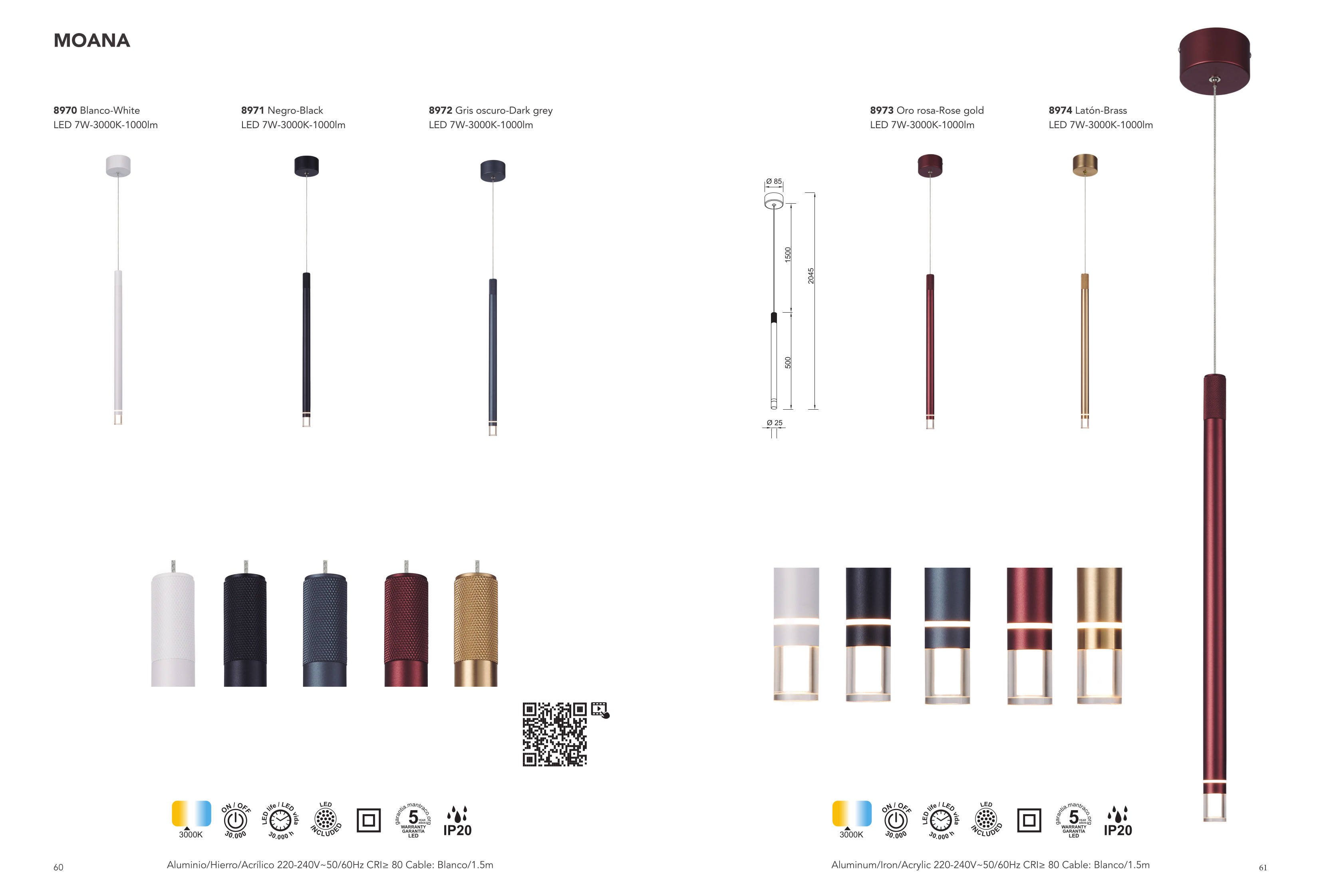Лед пендел 8972 Pend7W 3000K Dark grey ще осигури комфорт и естетика във всяко помещение, в което се постави. Цялостната визия и дизайн на led лампата и вложените в изработката й материали, като алуминий и метал в тъмно сив цвят, акрлил в бяло, ще допринесат за един неповторим стил. Благодарение на дългогодишния опит в производството на лед осветление, качествените материали и строгия контрол на качеството на изработка на производителя Mantra (Испания), 8972 Pend7W 3000K Dark grey е на високо европейско ниво.