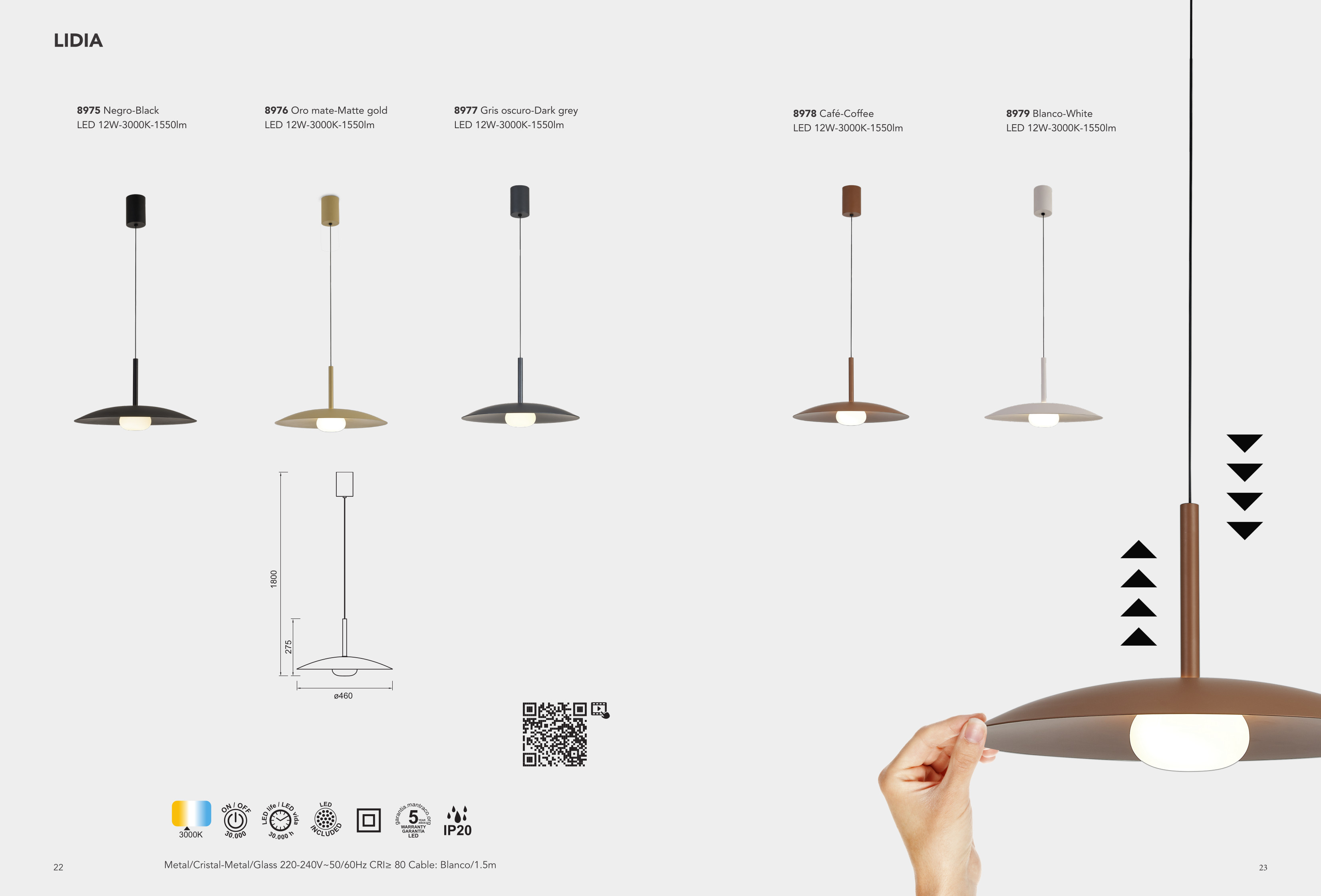 Лед пендел 8977 Pend 12W 3000K Dark Grey ще осигури комфорт и естетика във всяко помещение, в което се постави. Цялостната визия и дизайн на led лампата и вложените в изработката й материали, като метал в цвят тъмно сиво, стъкло в бяло, ще допринесат за един неповторим стил. Благодарение на дългогодишния опит в производството на лед осветление, качествените материали и строгия контрол на качеството на изработка на производителя Mantra (Испания), 8977 Pend 12W 3000K Dark Grey е на високо европейско ниво.