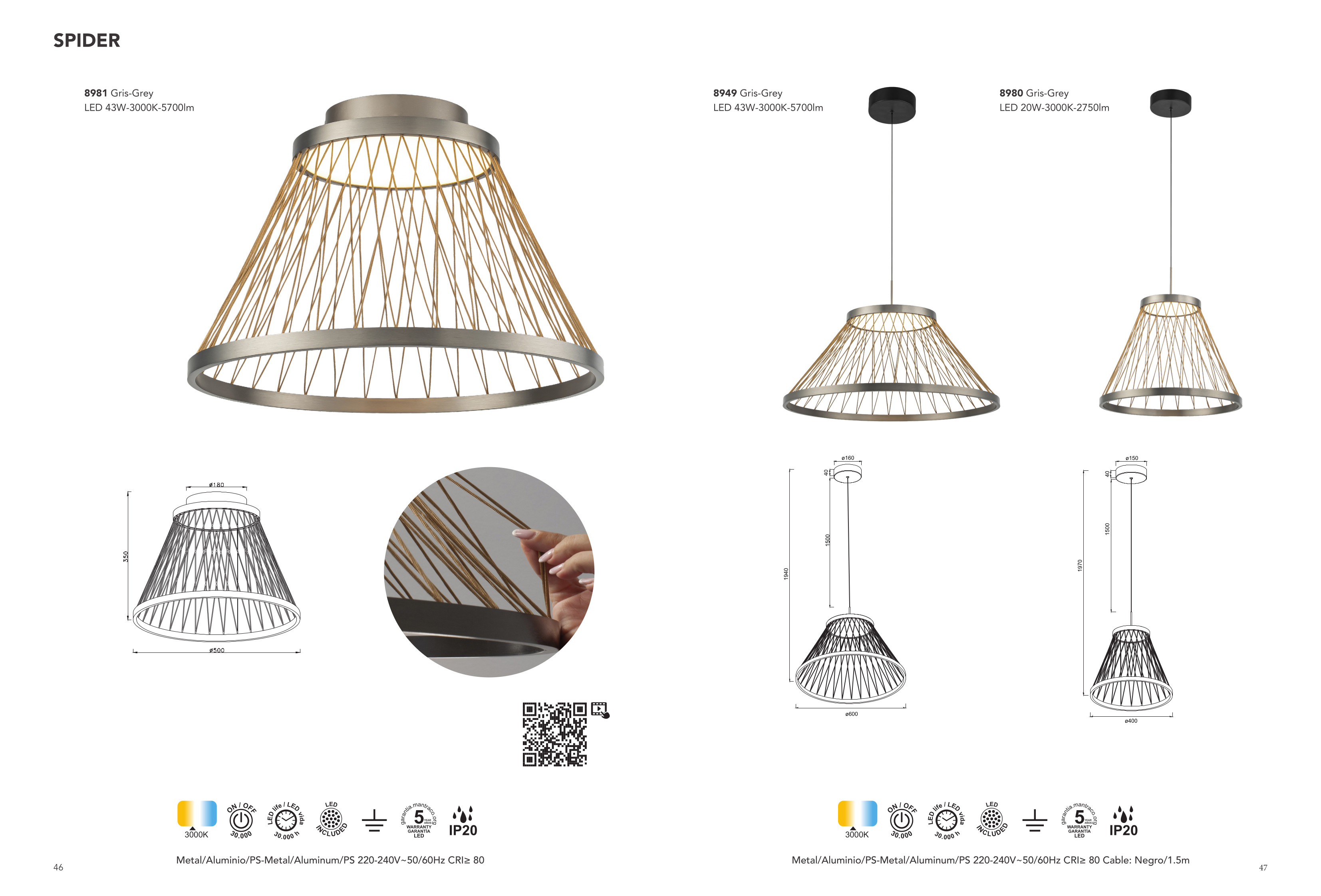 Осветителното тяло 8980 Pend 20W 3000K Grey ще осигури комфорт и естетика във всяко помещение, в което се постави. Цялостната визия и дизайн на лампата и вложените в изработката й материали, като алуминий и метал в тъмно сив цвят , ще допринесат за един неповторим стил. Благодарение на дългогодишния опит, качествените материали и строгия контрол на качеството на изработка на производителя Mantra (Испания), 8980 Pend 20W 3000K Grey е на високо европейско ниво.
