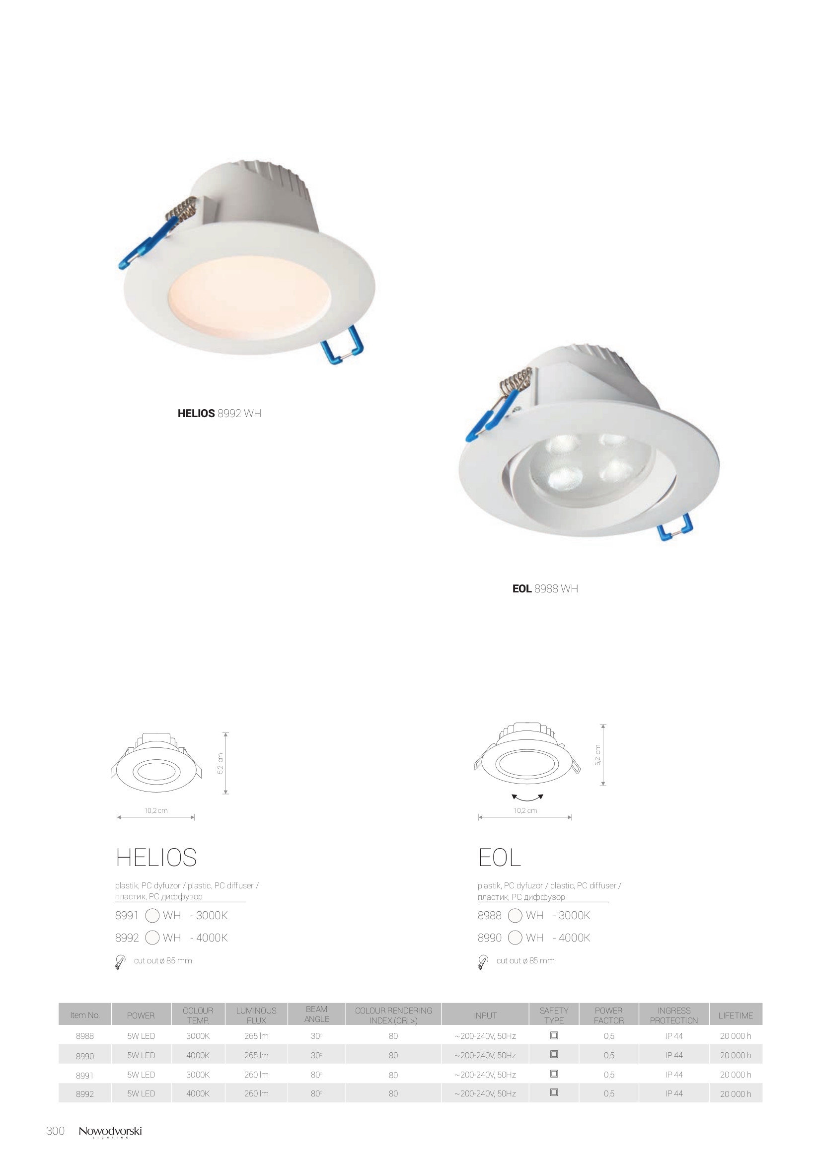 Осветителното тяло 8990 EOL LED 5W, 4000K ще осигури комфорт и естетика във всяко помещение, в което се постави. Цялостната визия и дизайн на лампата и вложените в изработката й материали, като полимер, дифузер от млечно бял РС, ще допринесат за един неповторим стил. Благодарение на дългогодишния опит, качествените материали и строгия контрол на качеството на изработка на производителя Nowodvorski (Полша), 8990 EOL LED 5W, 4000K е на високо европейско ниво.
