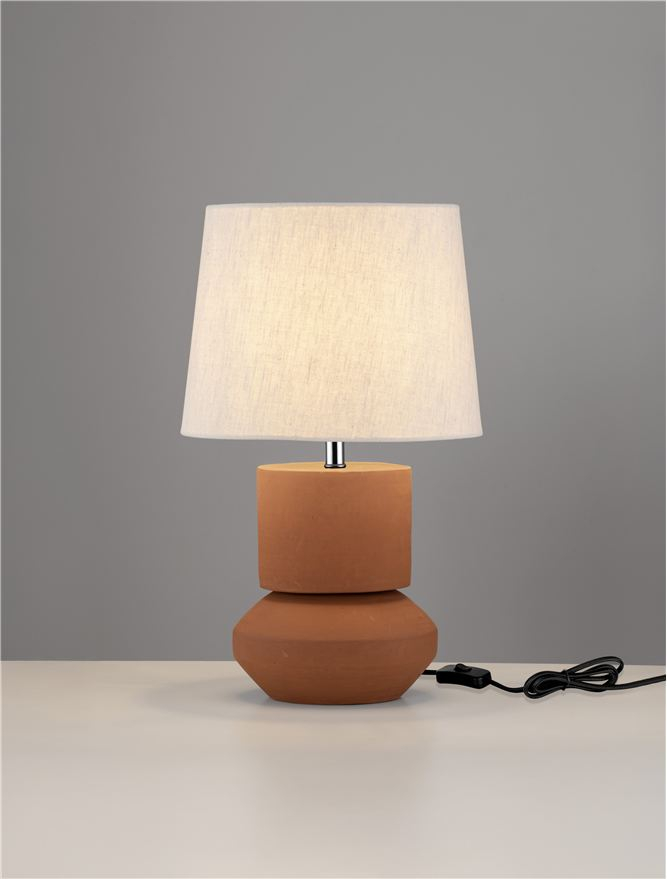 Осветителното тяло 9001060 ще осигури комфорт и естетика във всяко помещение, в което се постави. Цялостната визия и дизайн на лампата и вложените в изработката й материали, като теракота в цвят сиена, текстил в в светло бежово, дължина на кабела 1.2m , ще допринесат за един неповторим стил. Благодарение на дългогодишния опит, качествените материали и строгия контрол на качеството на изработка на производителя Nova-Luce (Гърция), 9001060 е на високо европейско ниво.
