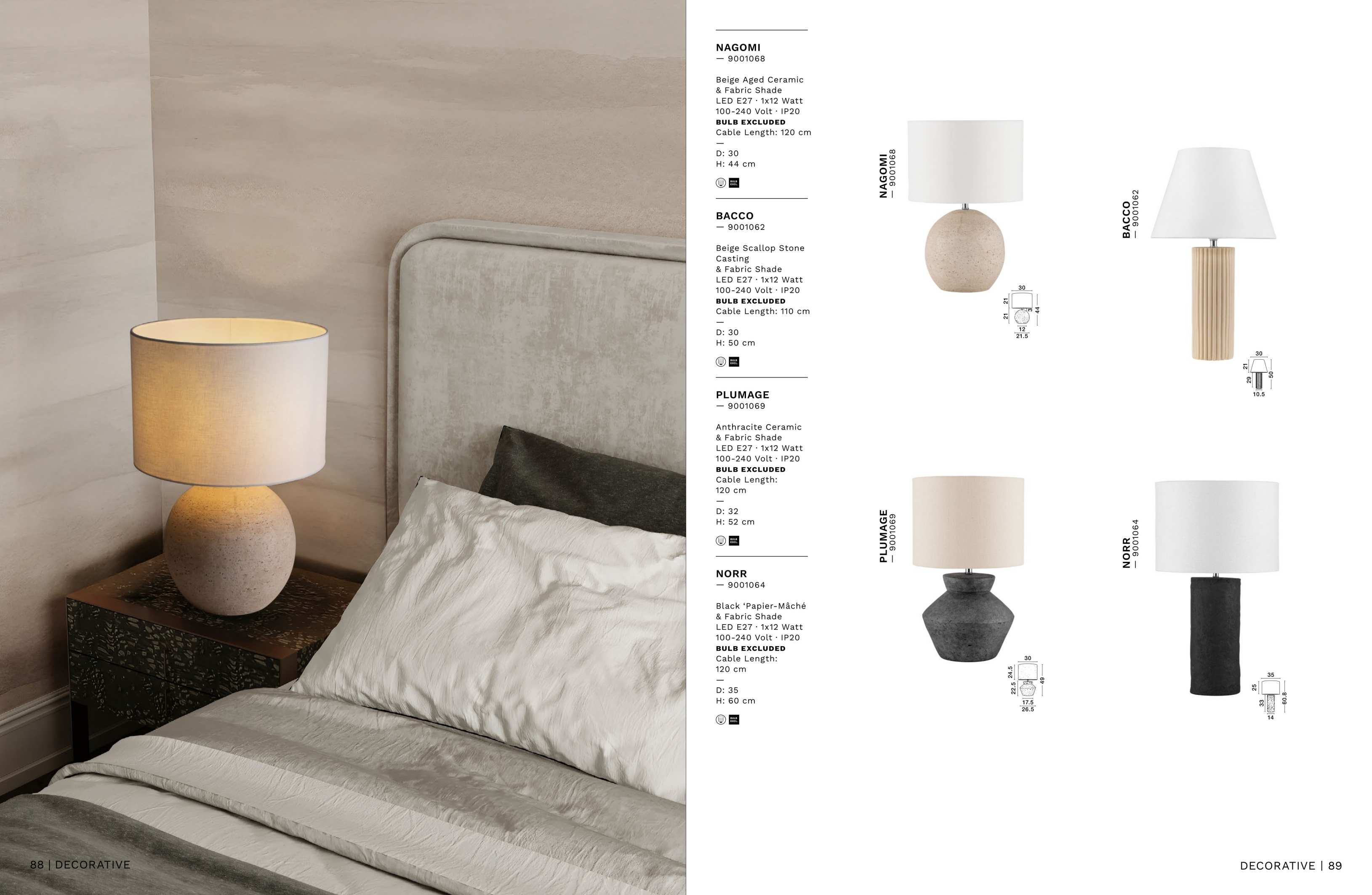 Осветителното тяло 9001069 ще осигури комфорт и естетика във всяко помещение, в което се постави. Цялостната визия и дизайн на лампата и вложените в изработката й материали, като керамика в цвят антрацит, абажур в светло бежово, дължина на кабела 1.2m, ще допринесат за един неповторим стил. Благодарение на дългогодишния опит, качествените материали и строгия контрол на качеството на изработка на производителя Nova-Luce (Гърция), 9001069 е на високо европейско ниво.