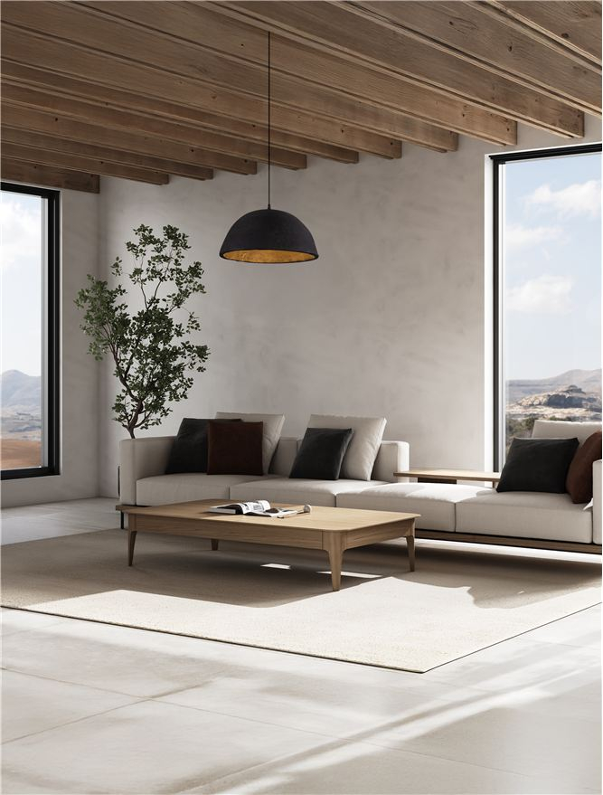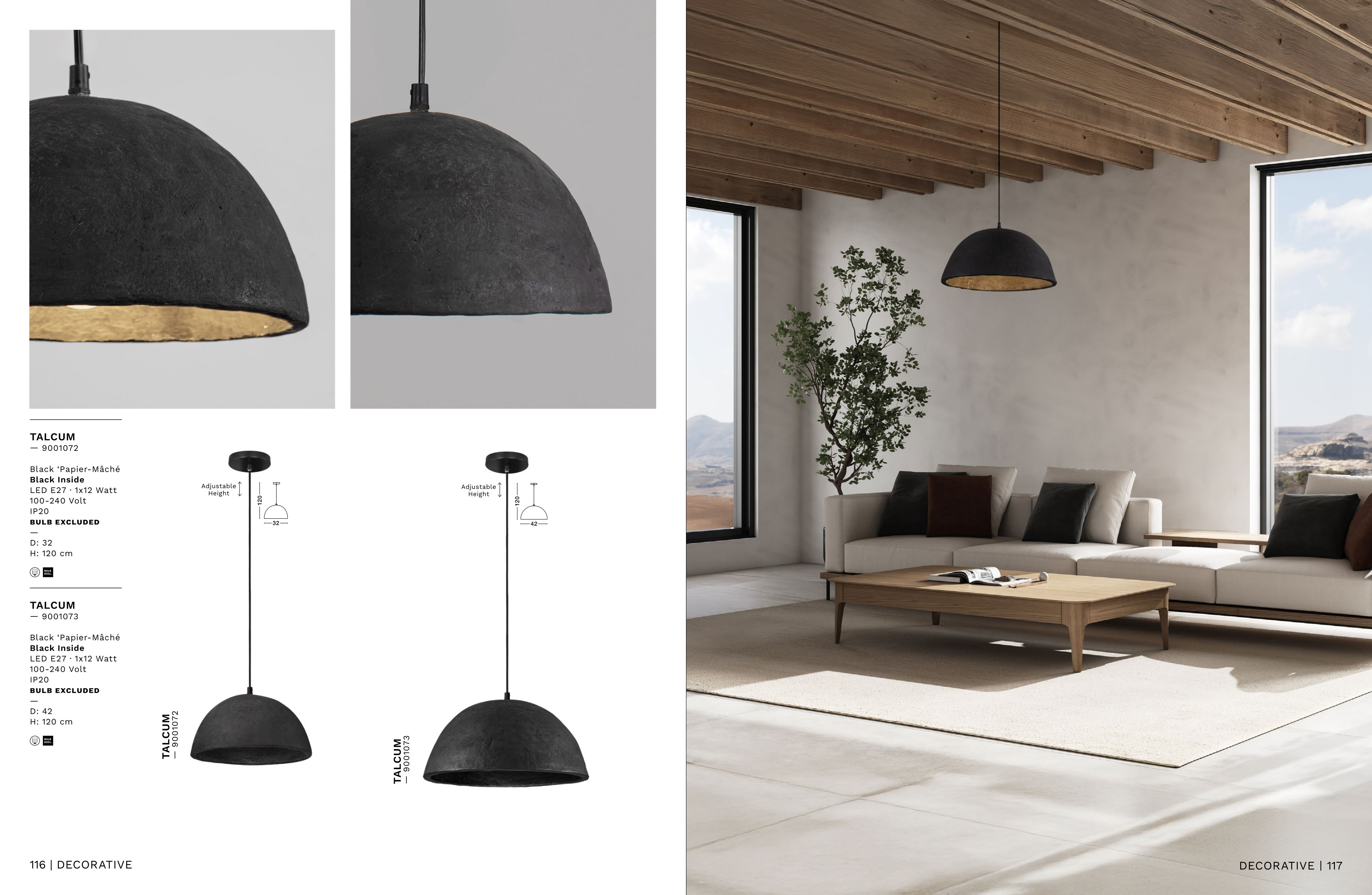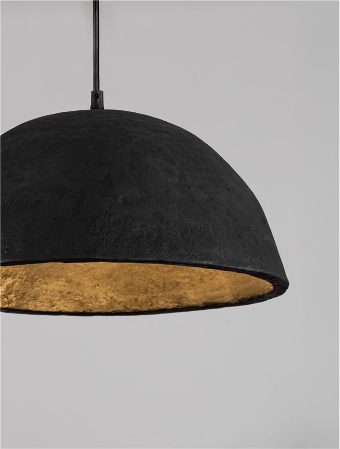 Стилът и естетиката на обстановката ще се обогатят благодарение, както на цялостната визия и дизайн на осветителното тяло, така и на вложените в изработката му, качествени материали, като: Papier-Mâché в черен цвят, черен PVC кабел.