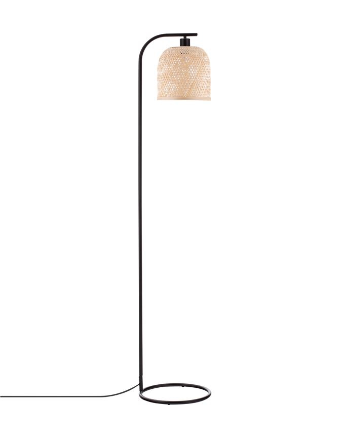 естествен бамбук, метал в черен цвят, черен PVC кабел с крачен превключвател ON/OFF и щепсел