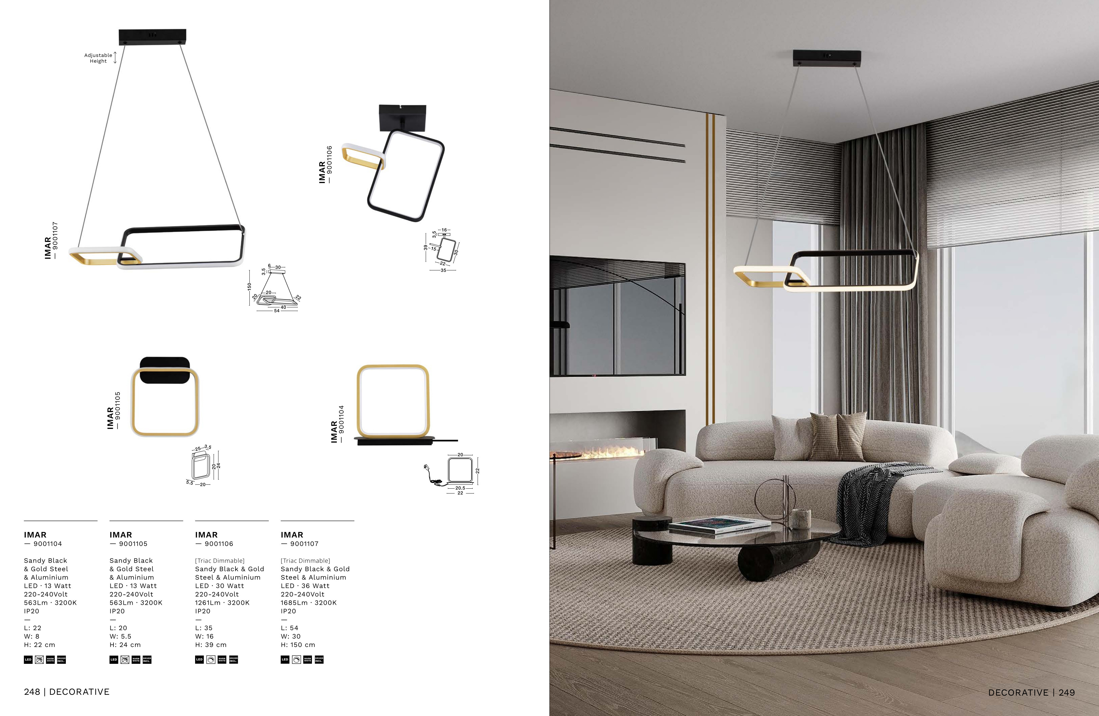 Осветителното тяло 9001104 ще осигури комфорт и естетика във всяко помещение, в което се постави. Цялостната визия и дизайн на лампата и вложените в изработката й материали, като стомана и алуминий в матово черен цвят и цвят злато, полимер в бяло, захранващ кабел, щепсел и превключвател ON/OFF, ще допринесат за един неповторим стил. Благодарение на дългогодишния опит, качествените материали и строгия контрол на качеството на изработка на производителя Nova-Luce (Гърция), 9001104 е на високо европейско ниво.