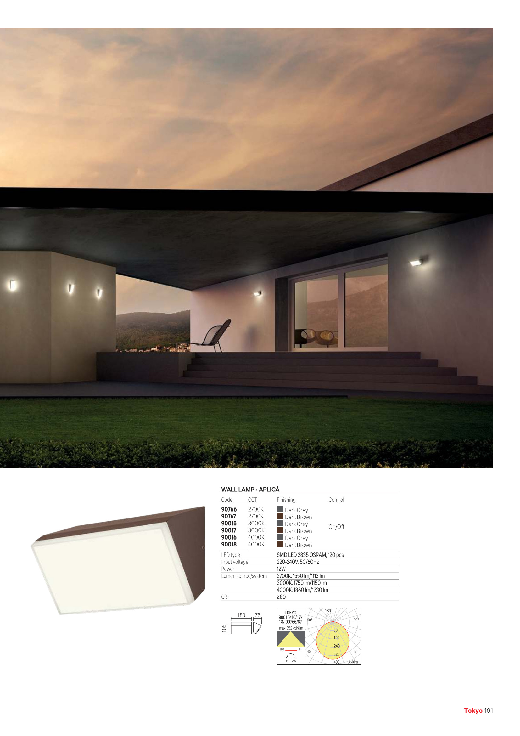 Осветителното тяло 90015 представлява аплик, външна лампа в съвременен стил. 90015 е от категорията осветителни тела и е подходящо за осветяване на различни помещения и пространства като: външно осветление, фасадно осветление.