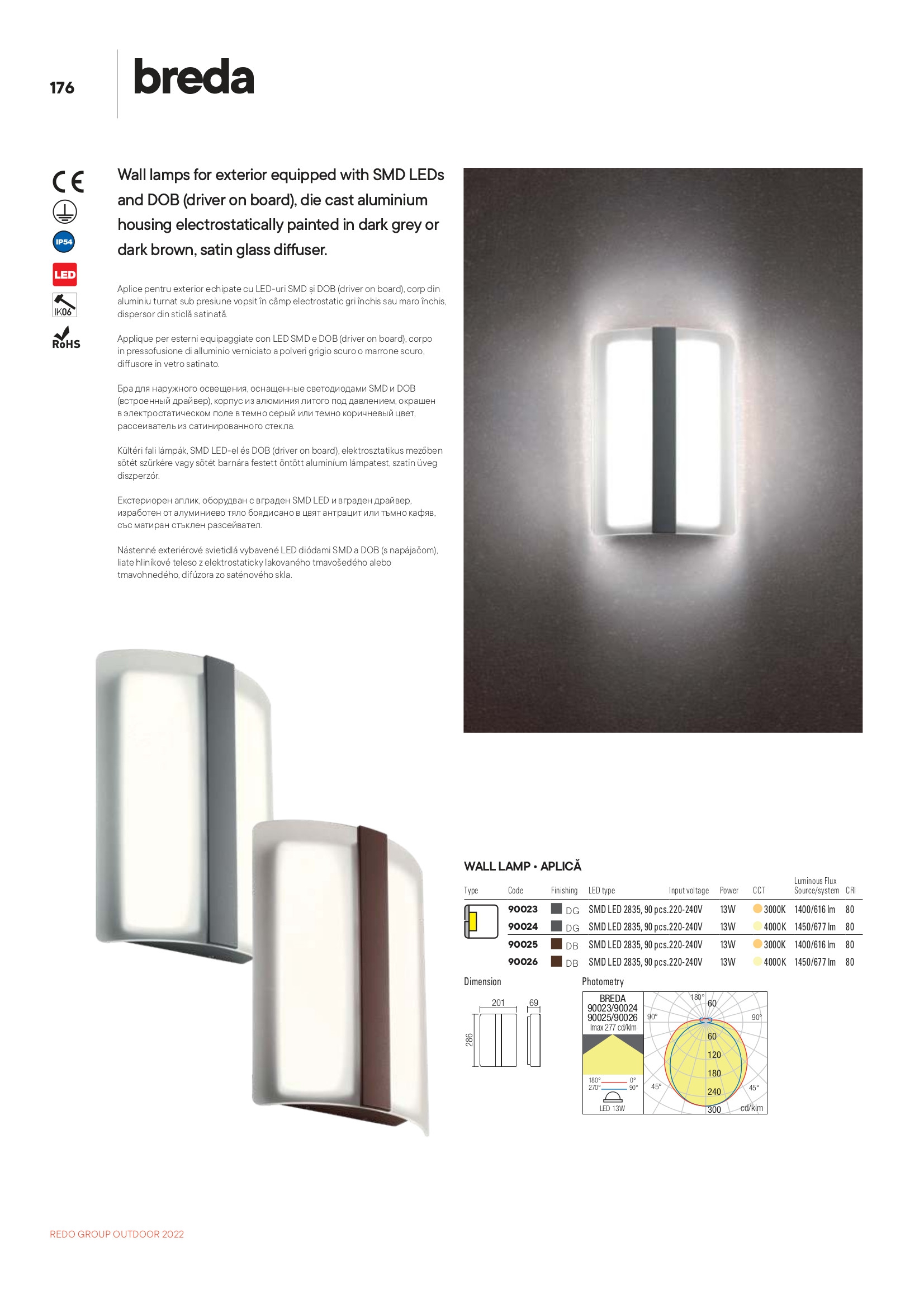 Осветителното тяло 90023 ще осигури комфорт и естетика във всяко помещение, в което се постави. Цялостната визия и дизайн на лампата и вложените в изработката й материали, като алуминий в цвят антрацит, матирано бяло стъкло, ще допринесат за един неповторим стил. Благодарение на дългогодишния опит, качествените материали и строгия контрол на качеството на изработка на дизайнерската линия Redo Outdoor на производителя Redo (Румъния), 90023 е на високо европейско ниво.