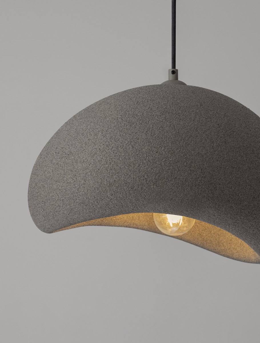 Стилът и естетиката на обстановката ще се обогатят благодарение, както на цялостната визия и дизайн на осветителното тяло, така и на вложените в изработката му, качествени материали, като: полимер в каменно сив цвят, резин.