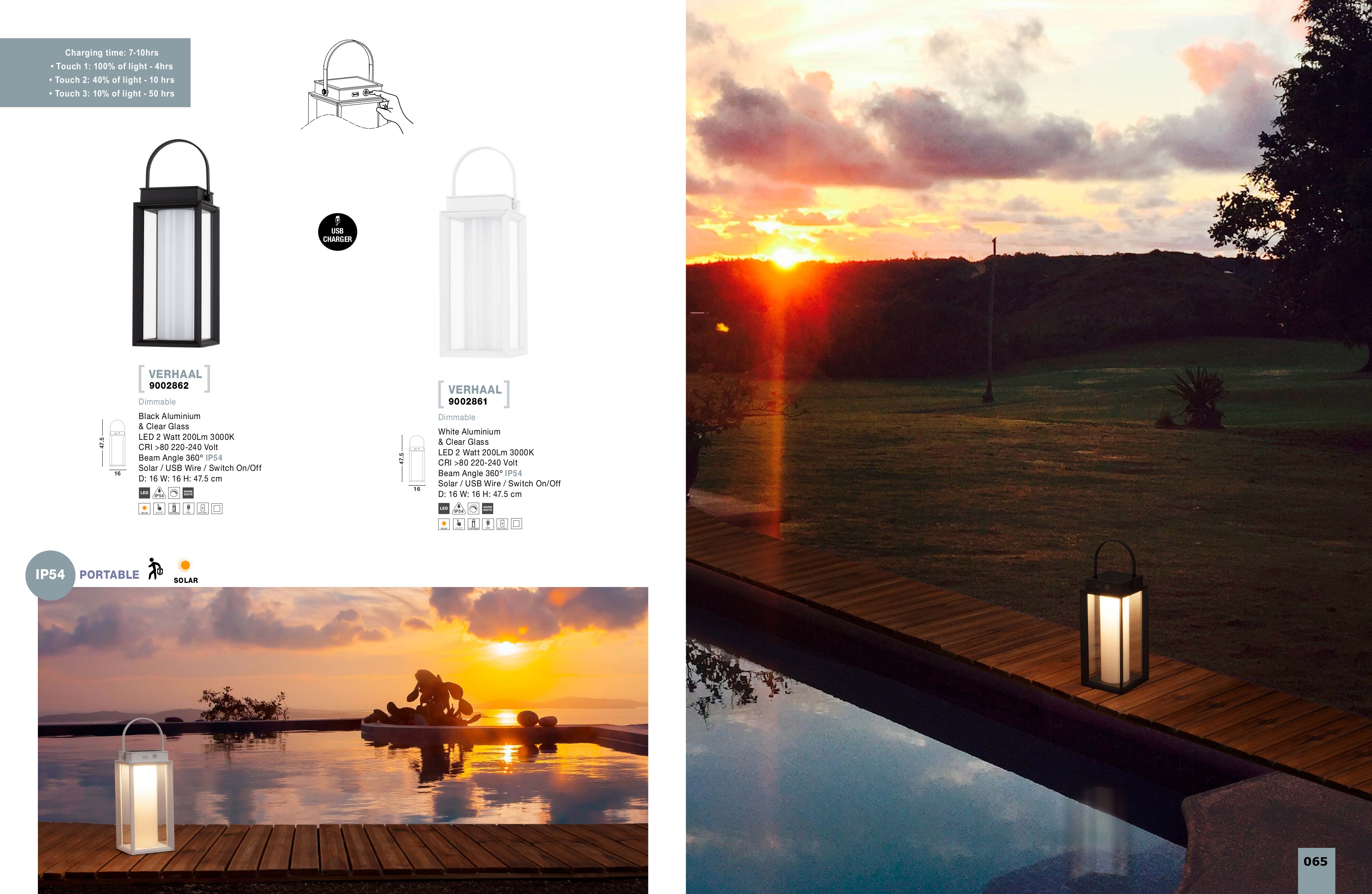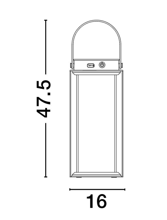 алуминий в бял цвят, прозрачно стъкло, ключ ON/OFF, порт type C, време на зареждане на лампата 7-10 часа, соларно зареждане