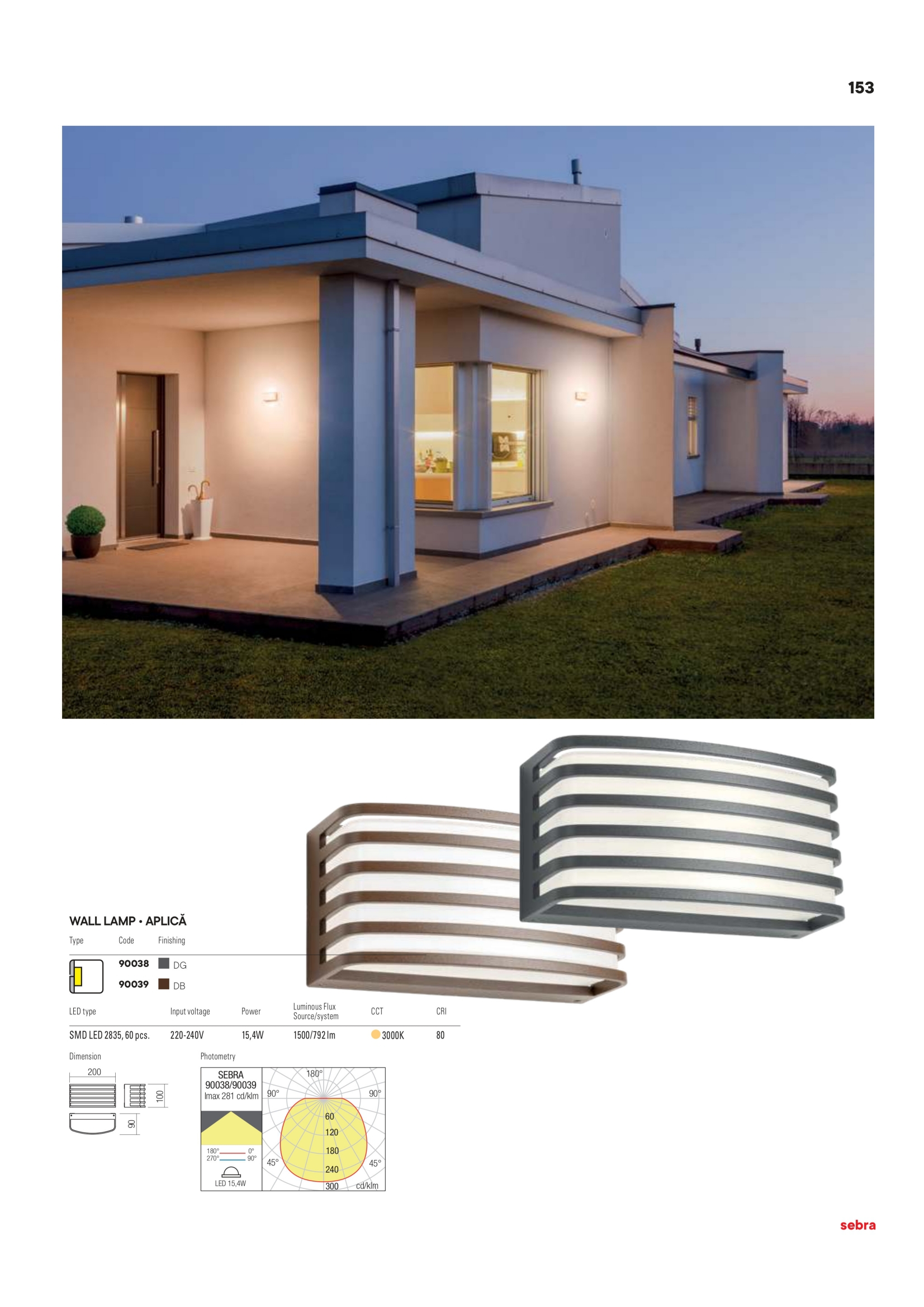 Осветителното тяло 90039 представлява лед аплик, външна лампа в съвременен стил. 90039 е от категорията и е подходящо за осветяване на различни помещения и пространства като: външно осветление, фасадно осветление.