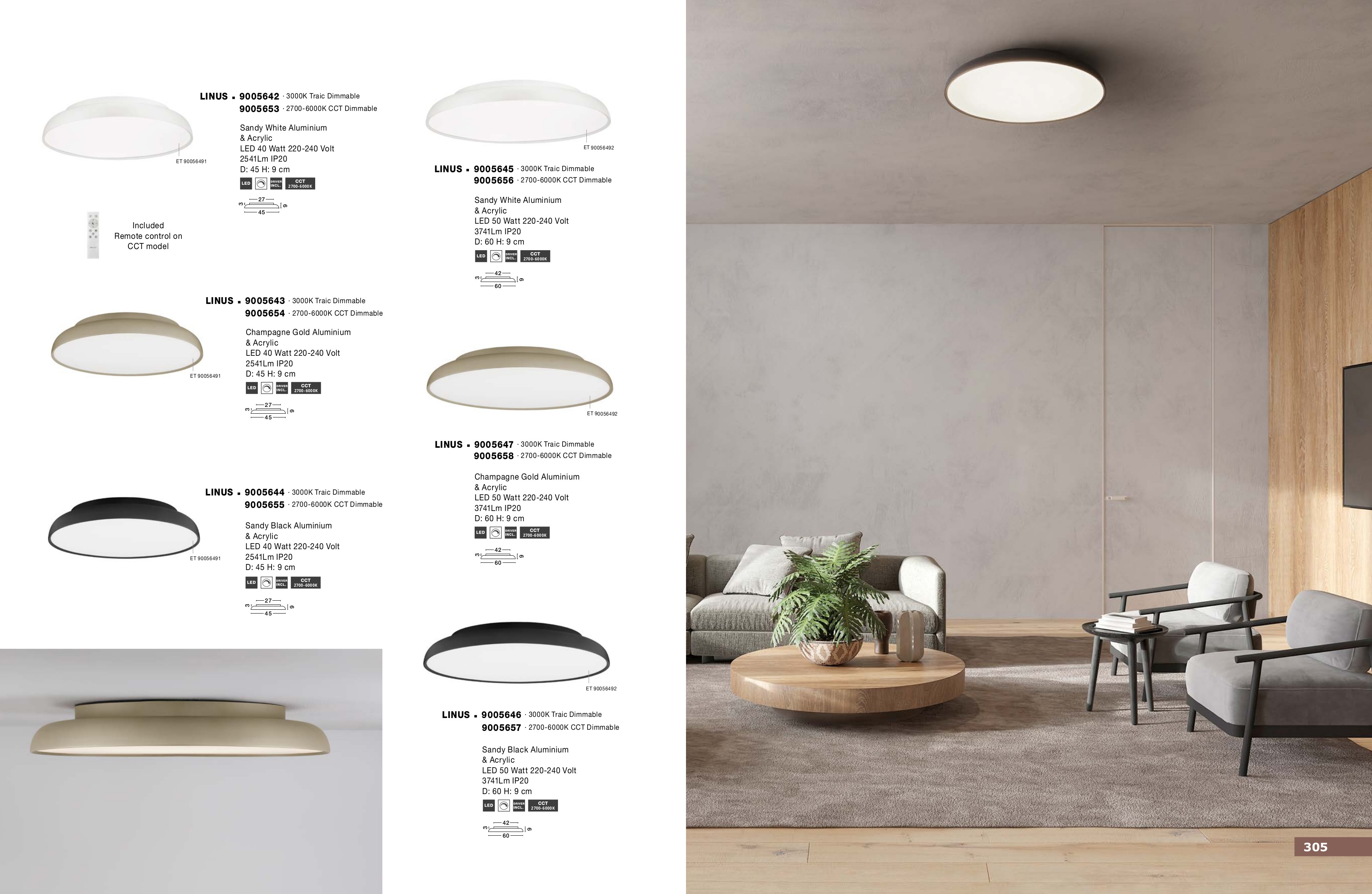 Лед плафон 9005656 ще осигури комфорт и естетика във всяко помещение, в което се постави. Цялостната визия и дизайн на led лампата и вложените в изработката й материали, като алуминий в цвят пясъчно бяло, полимер в бяло, смяна на цветната температура и димируемост с дистанционно управление, ще допринесат за един неповторим стил. Благодарение на дългогодишния опит в производството на лед осветление, качествените материали и строгия контрол на качеството на изработка на производителя Nova-Luce (Гърция), 9005656 е на високо европейско ниво.