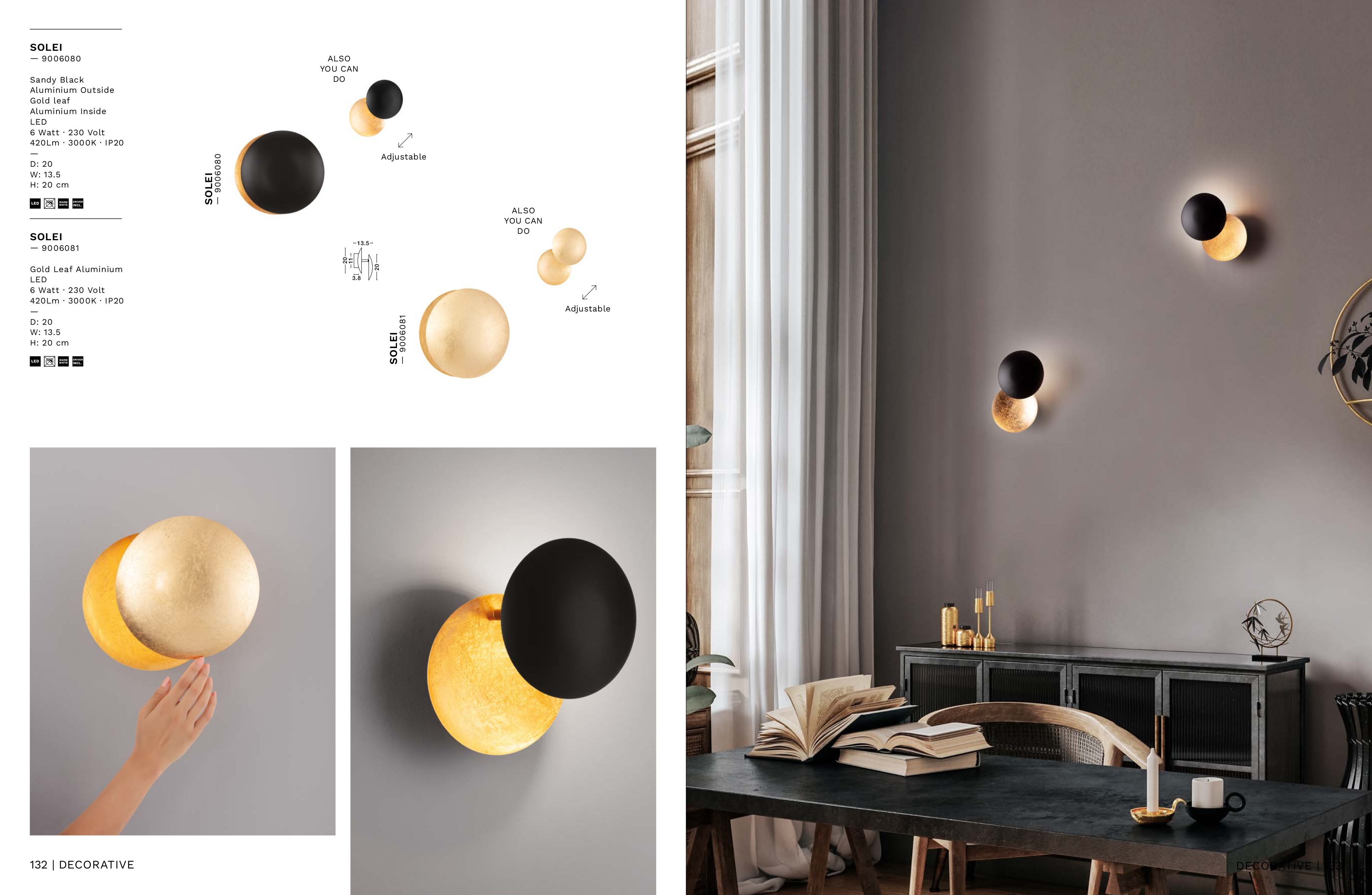 Лед аплик 9006080 ще осигури комфорт и естетика във всяко помещение, в което се постави. Цялостната визия и дизайн на led лампата и вложените в изработката й материали, като алуминий в пясъчно черен цвят, алуминий с положен златен лист, дисковете са подвижни един спрямо друг и могат да се преместват, ще допринесат за един неповторим стил. Благодарение на дългогодишния опит в производството на лед осветление, качествените материали и строгия контрол на качеството на изработка на производителя Nova-Luce (Гърция), 9006080 е на високо европейско ниво.