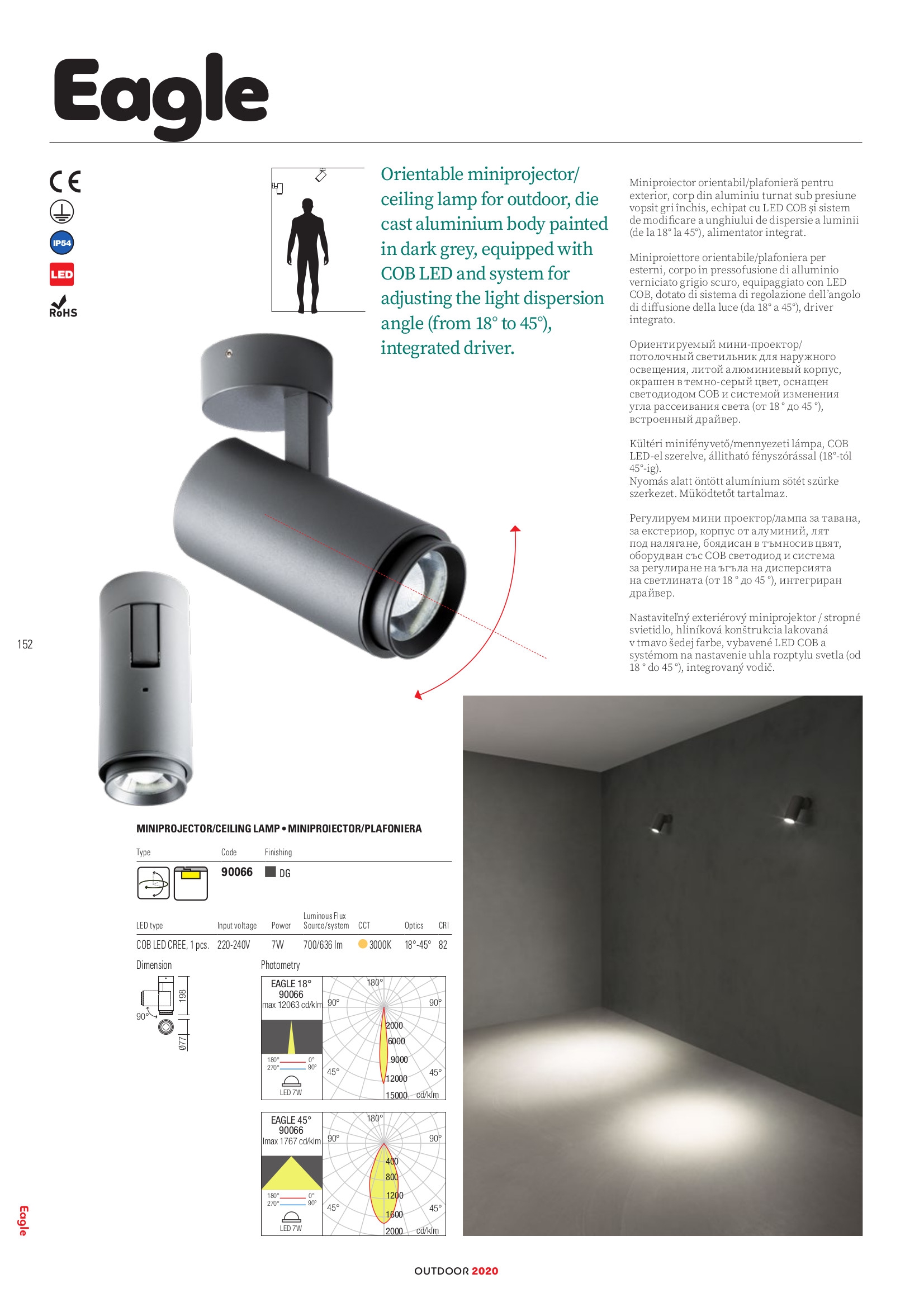 Осветителното тяло 90066 представлява външна лампа, спот лампа в съвременен стил. 90066 е от категорията осветителни тела и е подходящо за осветяване на различни помещения и пространства като: външно осветление, фасадно осветление.