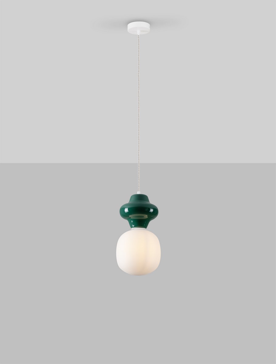 Осветителното тяло 9009107 ще осигури комфорт и естетика във всяко помещение, в което се постави. Цялостната визия и дизайн на лампата и вложените в изработката й материали, като метал в матово бял цвят, керамика в цвят зелен яспис, обработено с киселина опалово бяло стъкло, ще допринесат за един неповторим стил. Благодарение на дългогодишния опит, качествените материали и строгия контрол на качеството на изработка на производителя Nova-Luce (Гърция), 9009107 е на високо европейско ниво.