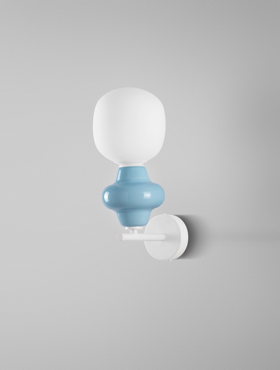 За стила и естетиката на обстановката допринасят, както цялостната визия и дизайн на осветителното тяло, така и вложените в изработката качествени материали, като: метал в цвят бял мат, керамика в бледо синьо, обработено с киселина опалово бяло стъкло.