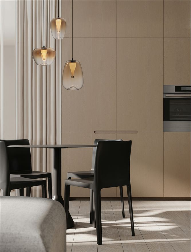Осветителното тяло 9009177 ще осигури комфорт и естетика във всяко помещение, в което се постави. Цялостната визия и дизайн на лампата и вложените в изработката й материали, като метал в цвят матово черно, стъкло в цвят кехлибар, ще допринесат за един неповторим стил. Благодарение на дългогодишния опит, качествените материали и строгия контрол на качеството на изработка на производителя Nova-Luce (Гърция), 9009177 е на високо европейско ниво.