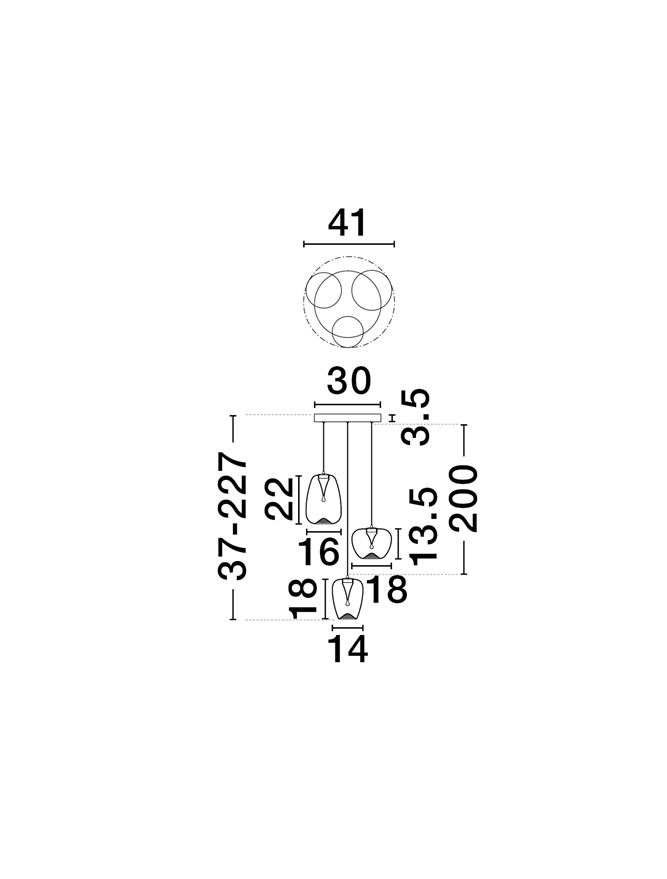 Ел. мощност 1 х 3 W Размери Ф16см x 22см x 37-227см Производител Nova-Luce, Гърция