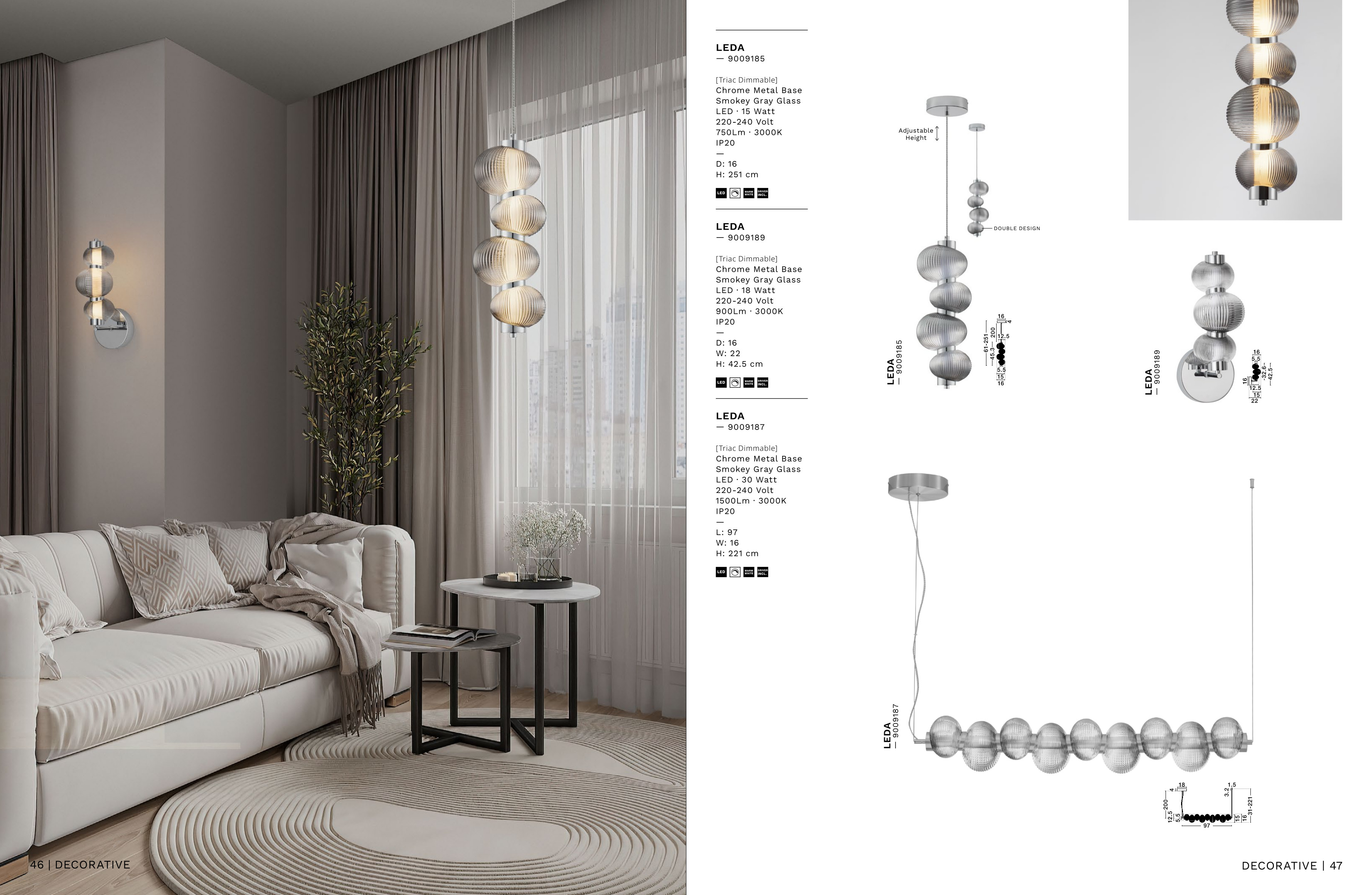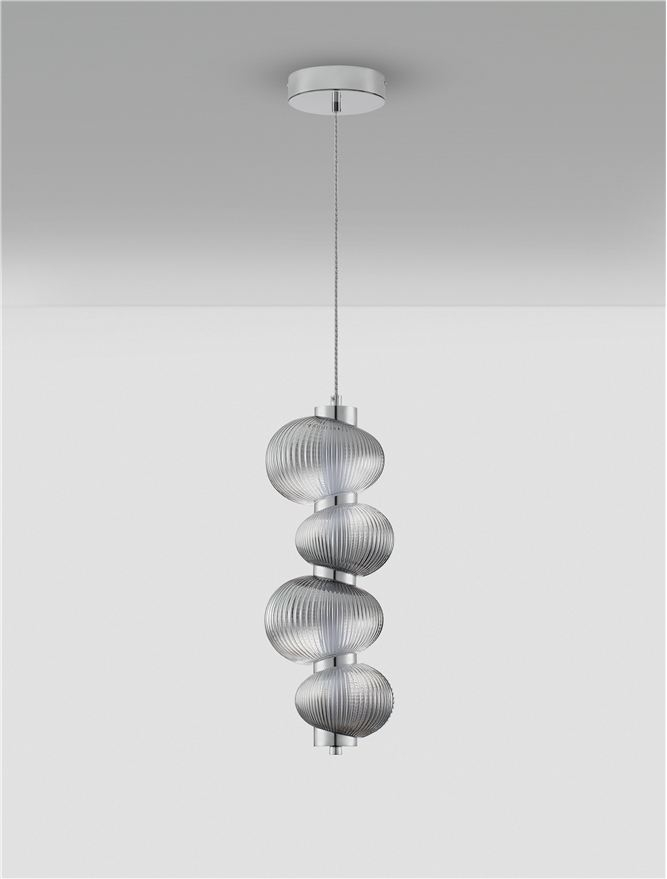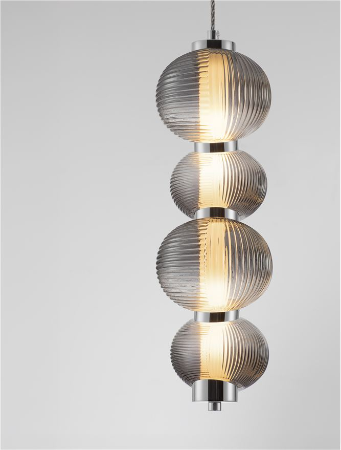 Лед пендел 9009185 ще осигури комфорт и естетика във всяко помещение, в което се постави. Цялостната визия и дизайн на led лампата и вложените в изработката й материали, като метал в цвят хром, стъкло в цвят опушено сиво, ще допринесат за един неповторим стил. Благодарение на дългогодишния опит в производството на лед осветление, качествените материали и строгия контрол на качеството на изработка на производителя Nova-Luce (Гърция), 9009185 е на високо европейско ниво.