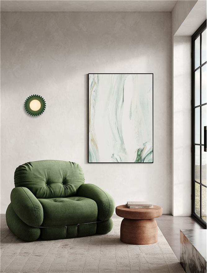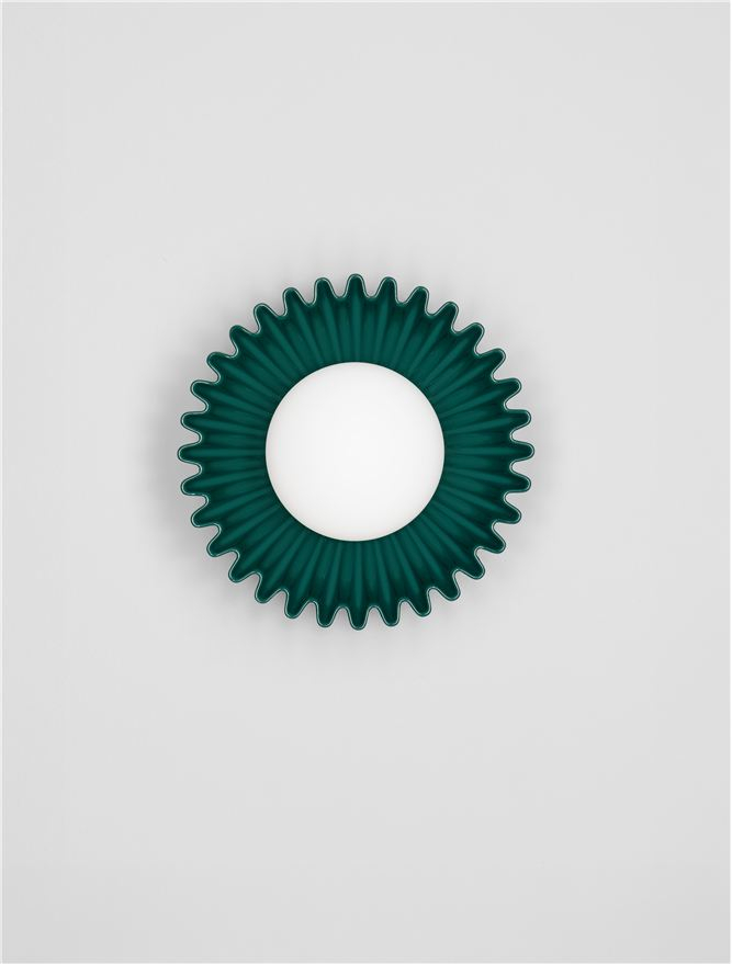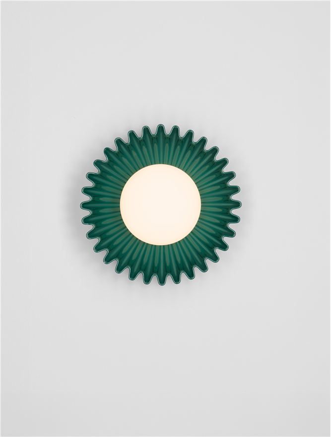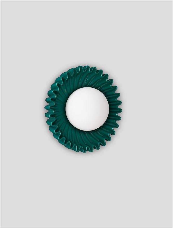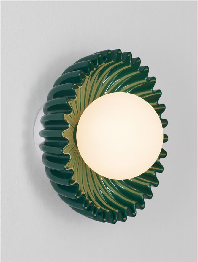 За стила и естетиката на обстановката допринасят, както цялостната визия и дизайн на осветителното тяло, така и вложените в изработката качествени материали, като: керамика в цвят яспис, стъкло в цвят опал.