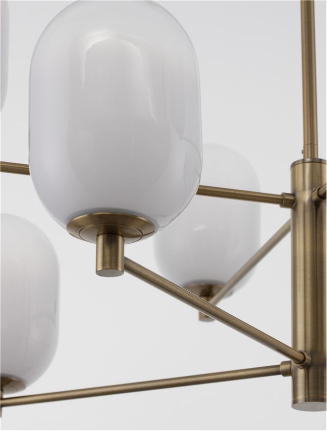 Осветителното тяло 9009245 ще осигури комфорт и естетика във всяко помещение, в което се постави. Цялостната визия и дизайн на лампата и вложените в изработката й материали, като метал в цвят златен месинг, градиентно бяло стъкло, ще допринесат за един неповторим стил. Благодарение на дългогодишния опит, качествените материали и строгия контрол на качеството на изработка на производителя Nova-Luce (Гърция), 9009245 е на високо европейско ниво.