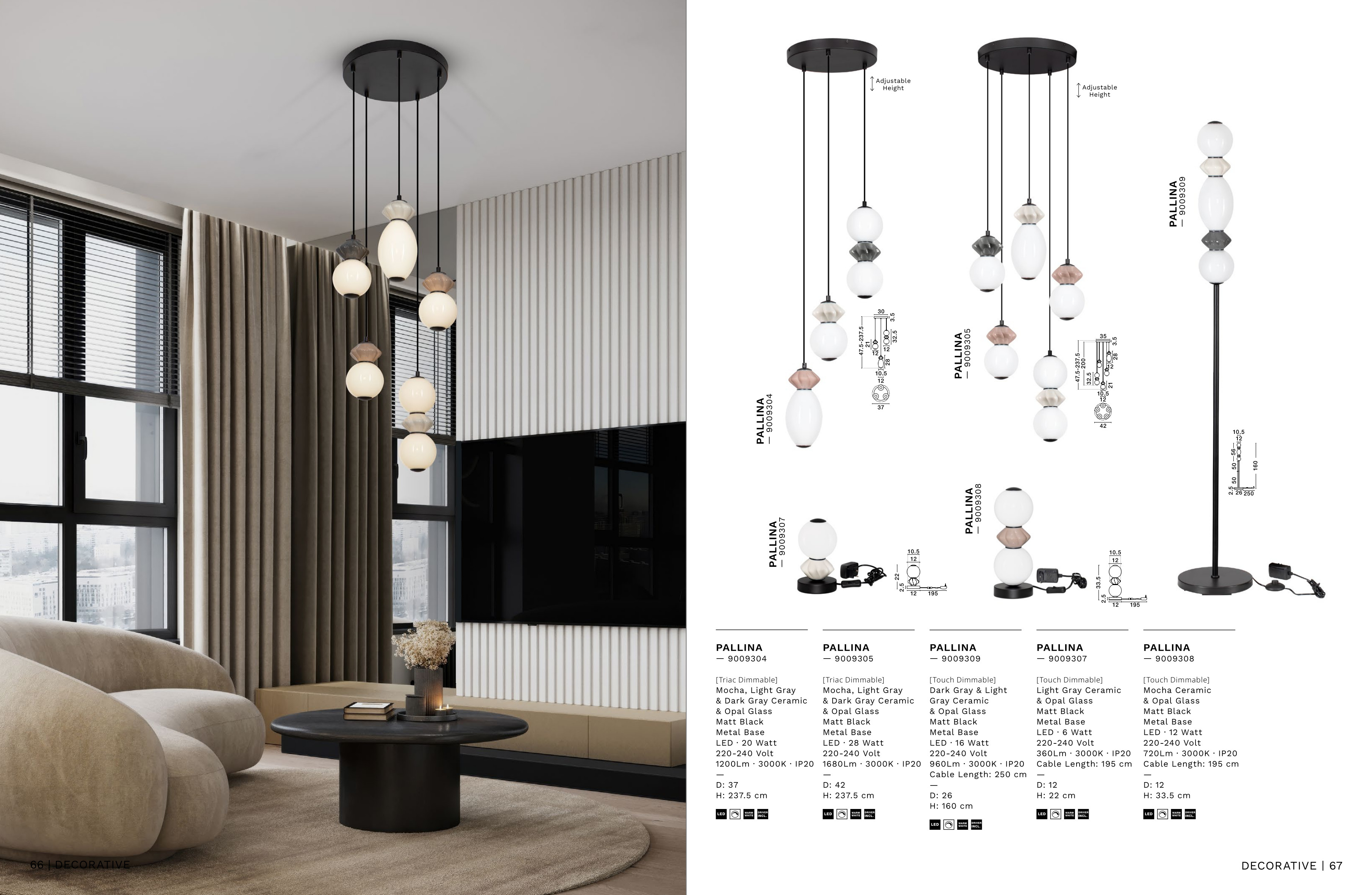Лед полилей 9009305 ще осигури комфорт и естетика във всяко помещение, в което се постави. Цялостната визия и дизайн на led лампата и вложените в изработката й материали, като керамика в цвят: Мока, светло сиво и тъмно сиво, стъкло в цвят опал, метал в матово черно, ще допринесат за един неповторим стил. Благодарение на дългогодишния опит в производството на лед осветление, качествените материали и строгия контрол на качеството на изработка на производителя Nova-Luce (Гърция), 9009305 е на високо европейско ниво.