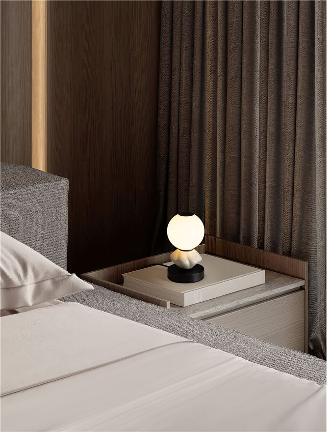 Осветителното тяло 9009307 представлява настолна лампа в съвременен стил. 9009307 е от категорията осветителни тела и е подходящо за осветяване на различни помещения и пространства като: всекидневна / хол, спалня, трапезария, офис.