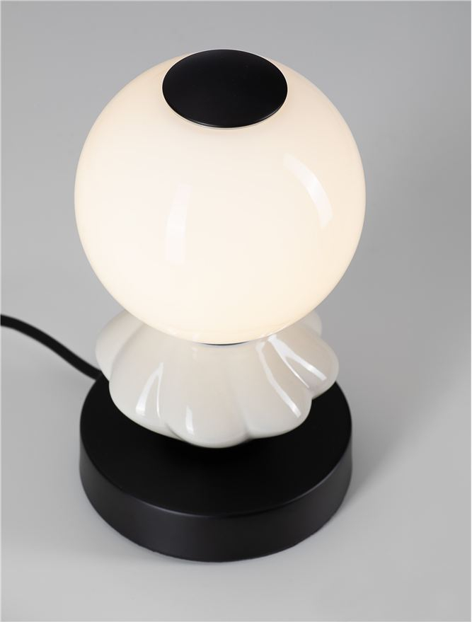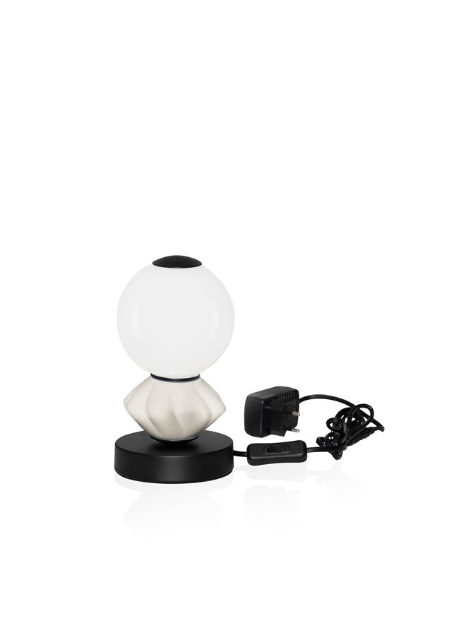 керамика в цвят светло сиво, стъкло в цвят опал, метал в матово черно, дължина на захранващия кабел 1.95m, димиране чрез докосване