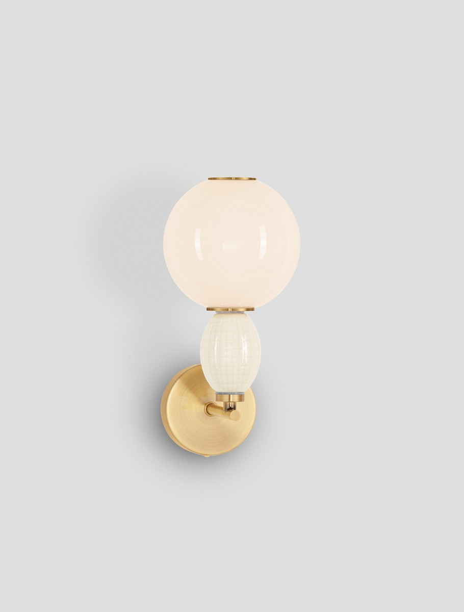 керамика в бежово, стъкло в цвят опал, метал в цвят златен мат