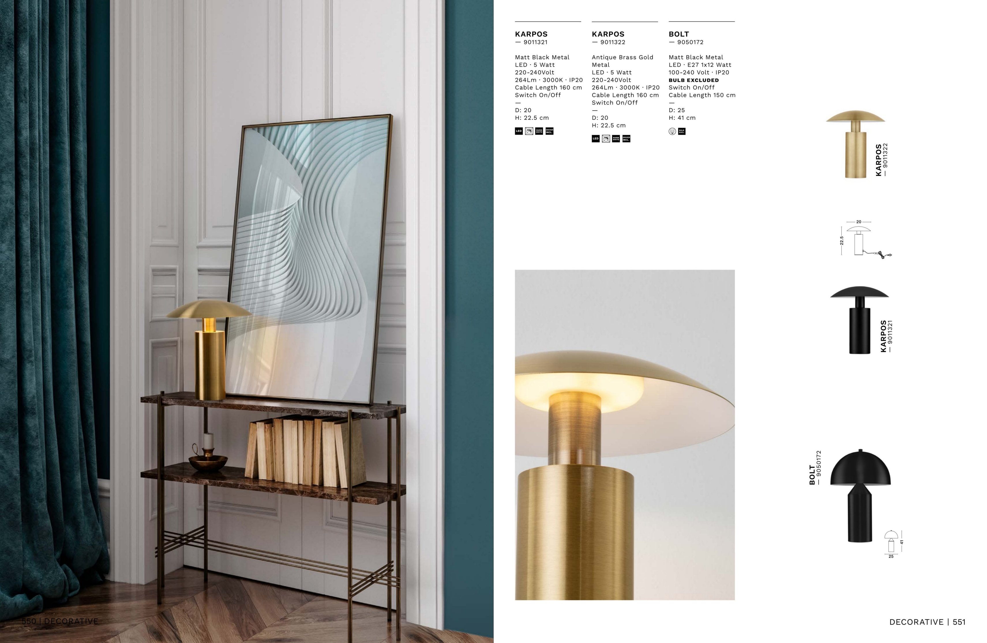 Осветителното тяло 9011322 представлява настолна лампа в съвременен стил. 9011322 е от категорията осветителни тела и е подходящо за осветяване на различни помещения и пространства като: всекидневна / хол, спалня, трапезария, офис.