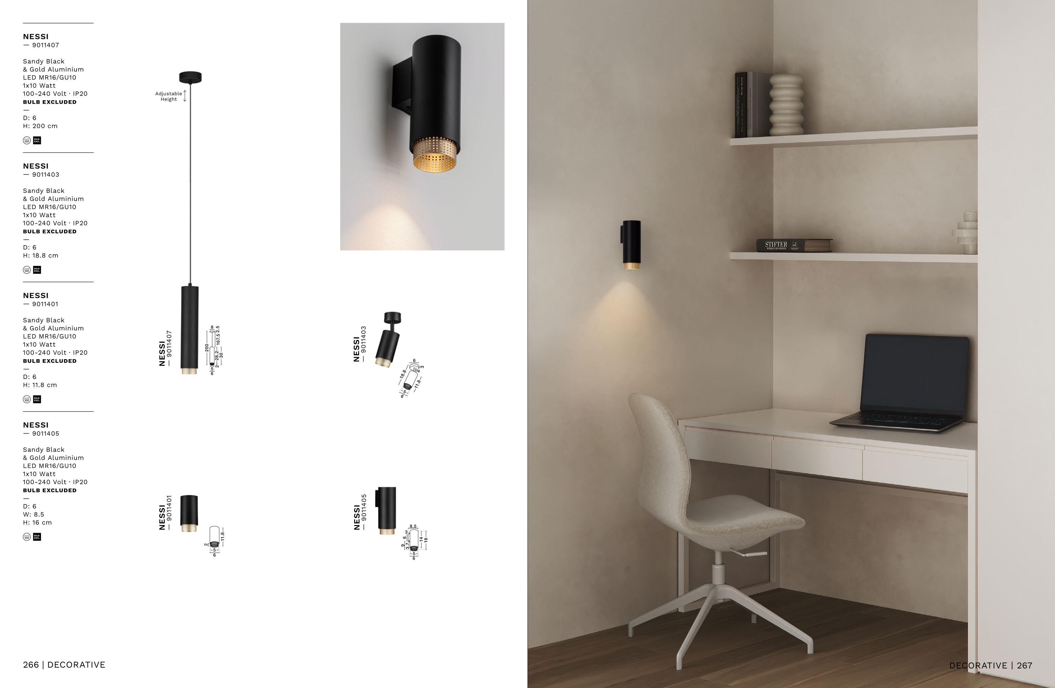 За стила, хармонията и естетиката на обстановката допринасят, както цялостната визия и дизайн на осветителното тяло, така и вложените в изработката му качествени материали, като: алуминий в матово черно, алуминий в цвят злато, регулируема посока на светене на осветителното тяло.